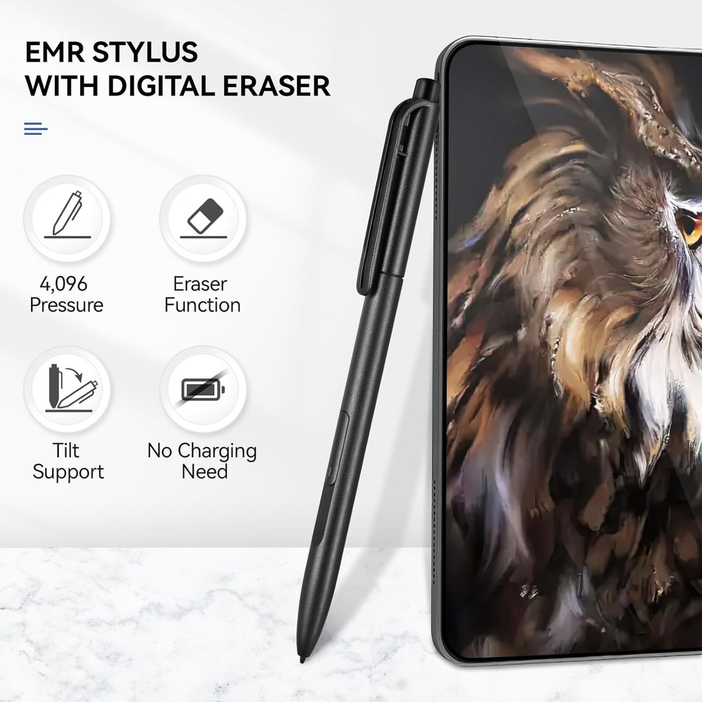 EMR Stylus Compatible with Remarkable 2 Pen ReMarkable 2 pen Eraser LuxeFusion Product Description Features 4096 Pressure Levels: Built-in EMR Technology helps to precisely sketch and shade with 4,096 pressure sensitivities that respond to the lightest touch.The accuracy of this pen is on par with the more expensive stylus made by Remarkable 2 Exclusive Tip Material & Eraser Function: Our stylus pen for reMarkable 2 tablet features a revolutionary pen tip made of advanced materials that are not only durable but also screen-friendly. Enjoy a realistic pen-like feel while protecting your screen from scratches. You can easily erase the lines and letters with the eraser on the end of the digital pen or press the stylus side button Palm Rejection & Tilt Support: Enhanced EMR technology recognizes only the pen tip and ignores the palm of your hand. You can rest your hand on the tablet screen and use it comfortably for long periods of time. Tablet stylus with tilt support makes writing, doodling and drawing easier and provides an exceptional writing experience Advanced EMR Technology & Eegonomic Design : Our EMR Stylus built in EMR technology, no need to charge, and no setup or pairing required to start writing. The EMR pen's body surface is light and comfortable, and provides a very natural writing experience with perfect ergonomics Product Details Package Dimensions: 6.85 x 2.2 x 0.47 inches Item Weight: 0.247 ounces Manufacturer: Fondpen Color: ReMarkable 2 pen with Eraser Brand: Fondpen Material: Plastic Item Weight: 7 Grams Compatible Devices: Remarkable 2, Remarkable 2 Tablet, Remarkable Tablet, Kindle Scribe, SuperNote, Wacom, EMR Devices, Galaxy Tab S6/S7/S8/S9, Galaxy Book, Remarkable 1, Remarkable 1 Tablet Remarkable 2, Remarkable 2 Tablet, Remarkable Tablet, Kindle Scribe, SuperNote, Wacom, EMR Devices, Galaxy Tab S6/S7/S8/S9, Galaxy Book, Remarkable 1, Remarkable 1 TabletRemarkable 2, Remarkable 2 Tablet, Remarkable Tablet, Kindle Scribe, SuperNote, Wacom, EMR Devices, Galaxy Tab S6/S7/S8/S9, Galaxy Book, Remarkable 1, Remarkable 1 Tablet See more Are Batteries Included: No Batteries Required?: No Free Shipping All orders ship free and fast to your doorstep. Easy Returns Satisfaction guaranteed. 30-day returns, no questions asked. 24/7 Support Contact us anytime; we’re here to help, day or night. Brought to you by LuxeFusion – Quality you can trust.