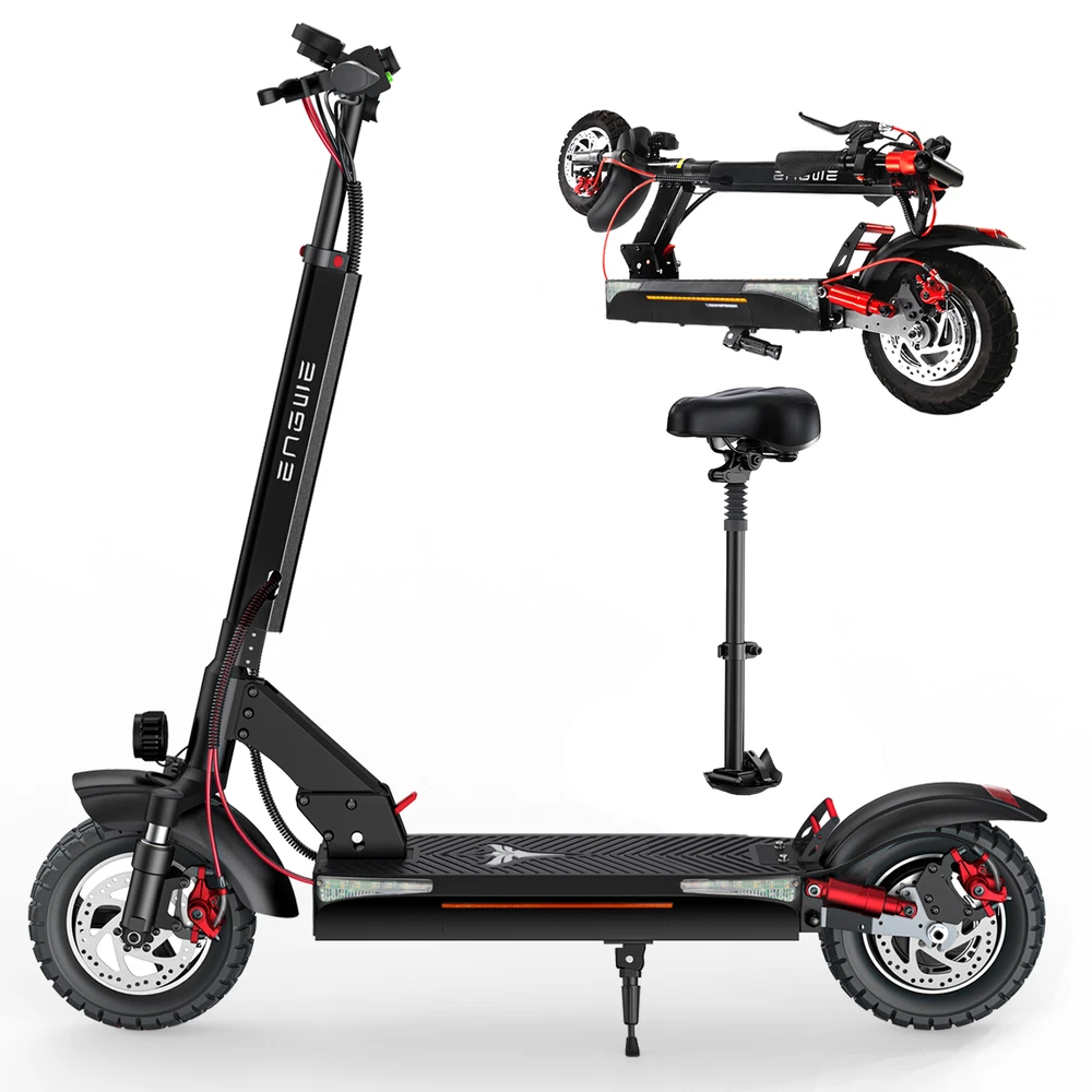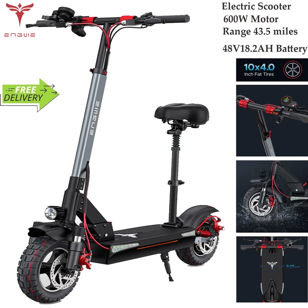 🛴A new option that allows you to freely across the city - Our New Y600 Adult Electric Scooter with Seat which is with powerful battery( 48V 18.2Ah ), makes it easier for you to complete daily travel, and one charge is enough for you to ride for 43.5 miles under specific conditions, max load of 330 lbs. 🛴Let You Ride As You Want, Easy to Drive - Our New Y600 E-scooter has three different riding modes ( Eco: 9Mph, D: 18Mph, S: 28Mph ), you can choose the most suitable mode for you according to your needs, and the 600W Motor/ 830w powerful high brushless motor allows you ride speed up to 28Mph, and handle all kinds of road conditions with ease! 🛴Comfortable Riding Experiences, Let You Enjoy Every Trip - Our New Y600 Electric Scooter for Adult adopts front and rear wheel suspension system and 10-inch pneumatic tires, which means you can enjoy a smoother and more comfortable riding experience, even on rough roads! 🛴Make Your Safety More Secure - Our New Y600 E-scooter for Adult is not only equipped with super bright headlight & taillight, but also has a side ambient light, which improves the safety of night riding and allows you to travel with peace of mind at any time. The perfect front & rear dual brakes and electronic braking system allow you to stop whenever you want. 🛴Your Great Helper for Travel - You can fold this New Y600 Electric Scooter with Seat for Adults with two-steps only in a few seconds for easy carrying and storage. The unfolded size: Package Dimensions (LWH): 48*9.4*18.9 (122x24x48 cm) . The folded size is Folded Size: 46.4*11*18.5 inches (118*28*47 cm) , easy to put in your garage or office. 🛴Buy with Confidence - ENGWE , a brand you can trust. We have always focused on the quality and technical improvement of electric scooters. Our electric scooter is designed to be the most sturdy and powerful electric scooter which will quickly become your favorite commuting or outdoor travel companion. ENGWE offer 180-days warranty for different parts, contact us to get fast and professional service. 🛴【Important Note】- The max speed and max range of per full charged vary based on a lot factors, including: rider's weight, riding surface, incline, ambient temperature, battery level, riding style (stop/start vs cruising), wind direction, wind speed etc. Specification: Model: Y600 Electric Scooter Body: Aluminium alloy Motor torque/N.M:28 NM Battery:48V18.2AH Lithium-Ion Battery*1 Range:43.5 miles Brakes: Mechanical Disc Brake/Power-off Brake Lever Tires: 10" Off-road Tires Max. loading: 330 lbs Max. speed: 28 mph Charging time: 6 Hours Product weight: 50 lb Brake:Mechanical Disc Brake/Power-off Brake Lever Tires:10*4.0 Tires Charging Time:About 10H Waterproof Grade:IPX5 Bike Weight:26.5 KG (58.4 lbs) Gross Weight:30.5 kg (67.2 lbs) Product Description The powerful 830W motor brings Speed up to 28MPH (Release speed),48V 18.2AH Battery brings long range can travel 43 miles for more fun. The enhanced climbing ability and full suspension design are suitable for more terrains. Detailed turn signals, front and rear lights will ensure your safe riding. Package contents: 1 x Electric scooter. 1 x Portable Folding Handle 1 x Tool set. 1 x Main charger. Rider Height: 5.4 (ft) -6.2 (ft) Payload Capacity: 264 lbs (120 kg) Package Dimensions (LWH): 48*9.4*18.9 (122x24x48 cm) A--Minimum Handlebar Height 38.5 inches (98 cm) B--Maximum Handlebar Height 48.4 inches (123 cm) C--Total Length 46.4 inches (118 cm) D--Minimum Saddle Height 23.6 inches (60 cm) E--Maximum Saddle Height 30.3 inches (77 cm) Folded Size: 46.4*11*18.5 inches ( 118*28*47 cm) A--Height 18.5 inches (47 cm) B--Length 46.4 inchs (118 cm) C--Width 11 inchs (28 cm) Our product: (1) Our product approved by UL2272/CE/ROHS certificates (2) Every piece of spare part will be inspected before assembling and very piece of completed product will be tested before shipment. Contact US: (1) Welcome to wholesale and purchase,If you have any question ,Please contact us first. We will reply you within 24 hours. (2)We will leave positive feedback to buyer as soon as buyer pays for the item.We hightly appreciate that you can contact with us before you leaving Negative feedback or Neutral feedback .We will offer help to resolve your problems as fast as possible.
