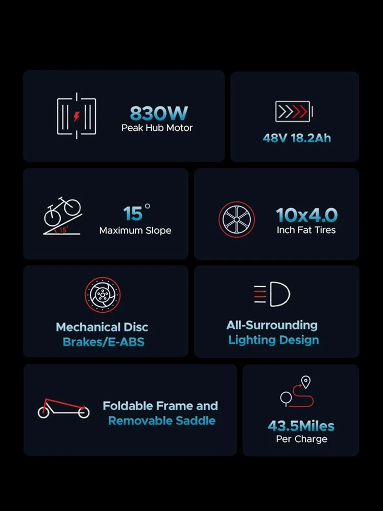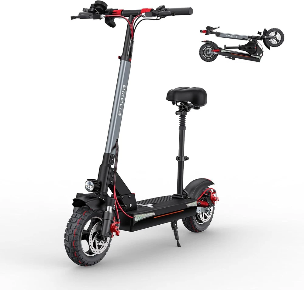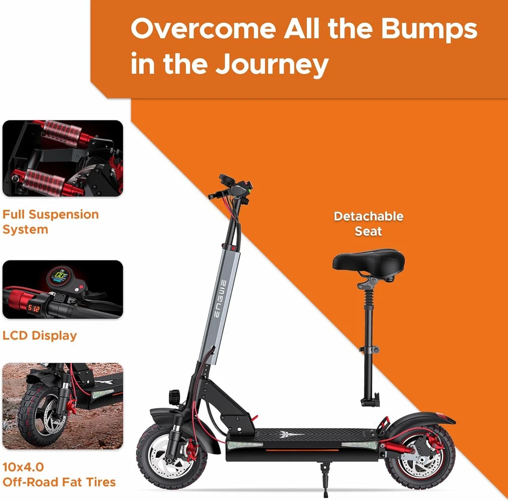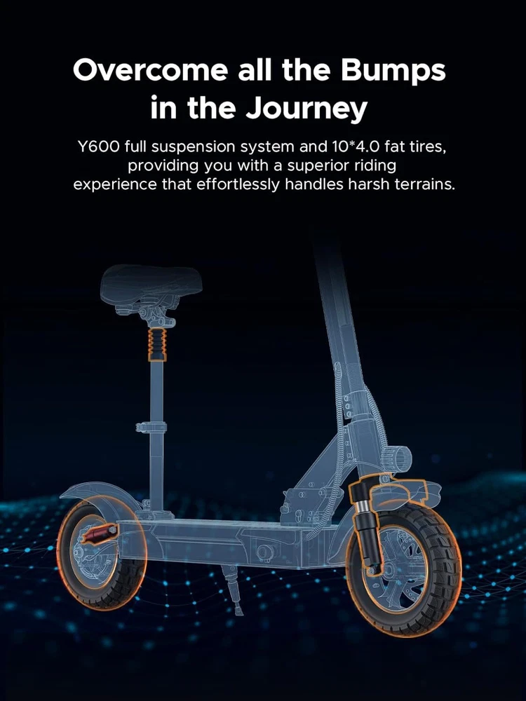 🛴A new option that allows you to freely across the city - Our New Y600 Adult Electric Scooter with Seat which is with powerful battery( 48V 18.2Ah ), makes it easier for you to complete daily travel, and one charge is enough for you to ride for 43.5 miles under specific conditions, max load of 330 lbs. 🛴Let You Ride As You Want, Easy to Drive - Our New Y600 E-scooter has three different riding modes ( Eco: 9Mph, D: 18Mph, S: 28Mph ), you can choose the most suitable mode for you according to your needs, and the 600W Motor/ 830w powerful high brushless motor allows you ride speed up to 28Mph, and handle all kinds of road conditions with ease! 🛴Comfortable Riding Experiences, Let You Enjoy Every Trip - Our New Y600 Electric Scooter for Adult adopts front and rear wheel suspension system and 10-inch pneumatic tires, which means you can enjoy a smoother and more comfortable riding experience, even on rough roads! 🛴Make Your Safety More Secure - Our New Y600 E-scooter for Adult is not only equipped with super bright headlight & taillight, but also has a side ambient light, which improves the safety of night riding and allows you to travel with peace of mind at any time. The perfect front & rear dual brakes and electronic braking system allow you to stop whenever you want. 🛴Your Great Helper for Travel - You can fold this New Y600 Electric Scooter with Seat for Adults with two-steps only in a few seconds for easy carrying and storage. The unfolded size: Package Dimensions (LWH): 48*9.4*18.9 (122x24x48 cm) . The folded size is Folded Size: 46.4*11*18.5 inches (118*28*47 cm) , easy to put in your garage or office. 🛴Buy with Confidence - ENGWE , a brand you can trust. We have always focused on the quality and technical improvement of electric scooters. Our electric scooter is designed to be the most sturdy and powerful electric scooter which will quickly become your favorite commuting or outdoor travel companion. ENGWE offer 180-days warranty for different parts, contact us to get fast and professional service. 🛴【Important Note】- The max speed and max range of per full charged vary based on a lot factors, including: rider's weight, riding surface, incline, ambient temperature, battery level, riding style (stop/start vs cruising), wind direction, wind speed etc. Specification: Model: Y600 Electric Scooter Body: Aluminium alloy Motor torque/N.M:28 NM Battery:48V18.2AH Lithium-Ion Battery*1 Range:43.5 miles Brakes: Mechanical Disc Brake/Power-off Brake Lever Tires: 10" Off-road Tires Max. loading: 330 lbs Max. speed: 28 mph Charging time: 6 Hours Product weight: 50 lb Brake:Mechanical Disc Brake/Power-off Brake Lever Tires:10*4.0 Tires Charging Time:About 10H Waterproof Grade:IPX5 Bike Weight:26.5 KG (58.4 lbs) Gross Weight:30.5 kg (67.2 lbs) Product Description The powerful 830W motor brings Speed up to 28MPH (Release speed),48V 18.2AH Battery brings long range can travel 43 miles for more fun. The enhanced climbing ability and full suspension design are suitable for more terrains. Detailed turn signals, front and rear lights will ensure your safe riding. Package contents: 1 x Electric scooter. 1 x Portable Folding Handle 1 x Tool set. 1 x Main charger. Rider Height: 5.4 (ft) -6.2 (ft) Payload Capacity: 264 lbs (120 kg) Package Dimensions (LWH): 48*9.4*18.9 (122x24x48 cm) A--Minimum Handlebar Height 38.5 inches (98 cm) B--Maximum Handlebar Height 48.4 inches (123 cm) C--Total Length 46.4 inches (118 cm) D--Minimum Saddle Height 23.6 inches (60 cm) E--Maximum Saddle Height 30.3 inches (77 cm) Folded Size: 46.4*11*18.5 inches ( 118*28*47 cm) A--Height 18.5 inches (47 cm) B--Length 46.4 inchs (118 cm) C--Width 11 inchs (28 cm) Our product: (1) Our product approved by UL2272/CE/ROHS certificates (2) Every piece of spare part will be inspected before assembling and very piece of completed product will be tested before shipment. Contact US: (1) Welcome to wholesale and purchase,If you have any question ,Please contact us first. We will reply you within 24 hours. (2)We will leave positive feedback to buyer as soon as buyer pays for the item.We hightly appreciate that you can contact with us before you leaving Negative feedback or Neutral feedback .We will offer help to resolve your problems as fast as possible.