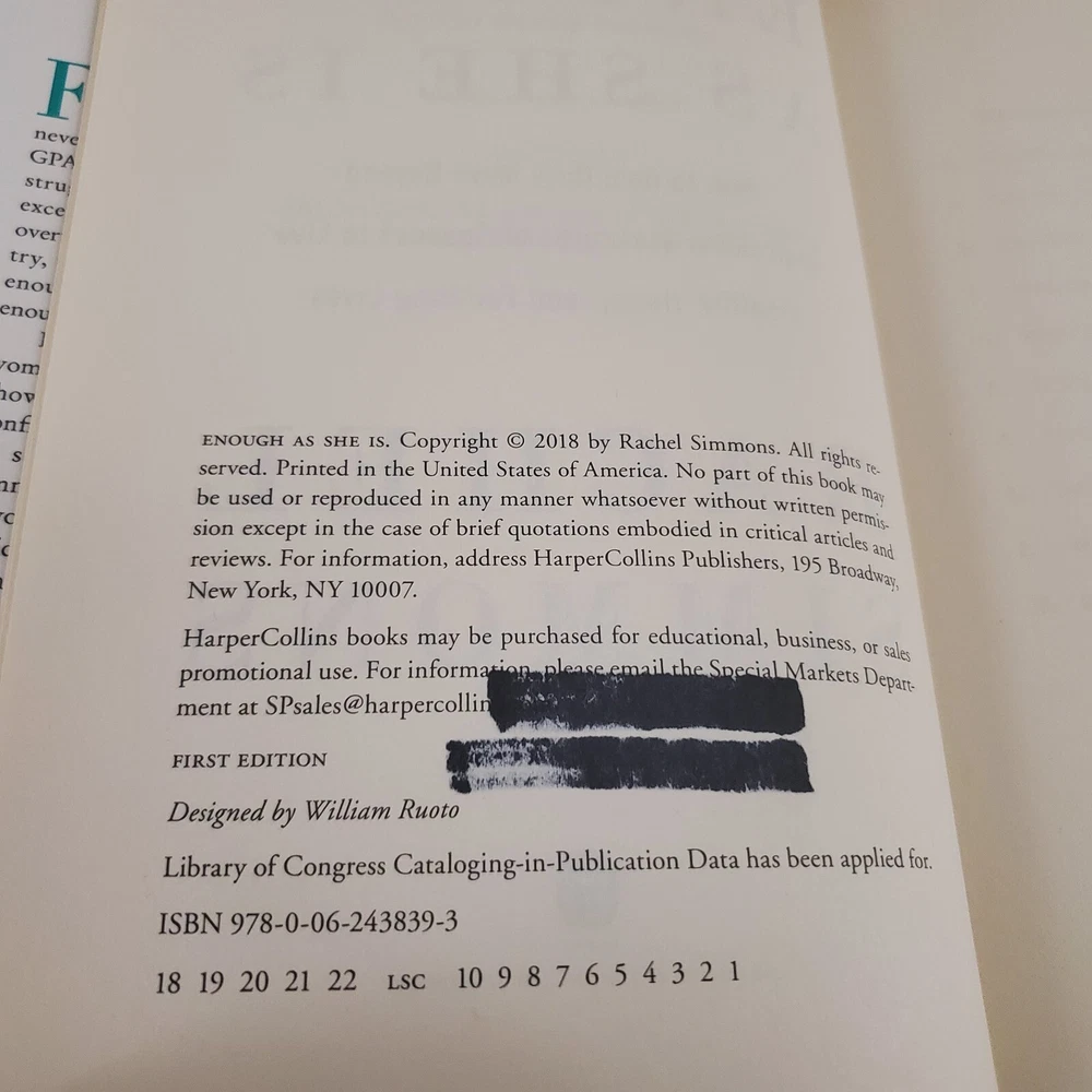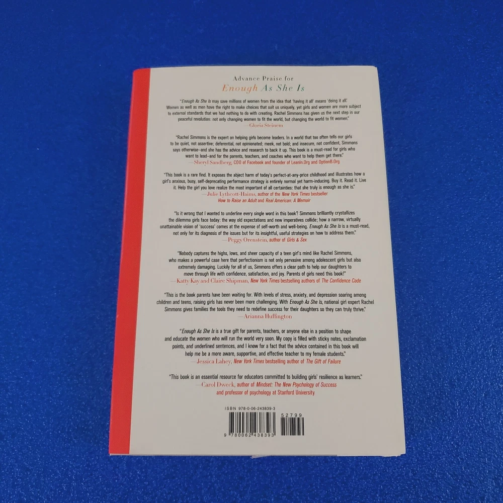 YOU GET THE BOOK YOU SEE IN THE PICTURES - ENOUGH AS SHE IS - EX-LIBRARY BOOK - GOOD CONDITION - PLEASE READ ITEM CONDITION ABOVE FOR MORE DETAILS - ISBN NUMBER: 9780062438393 - SHIPPING IS FREE