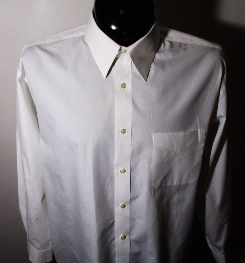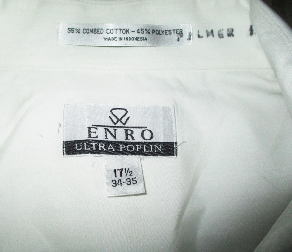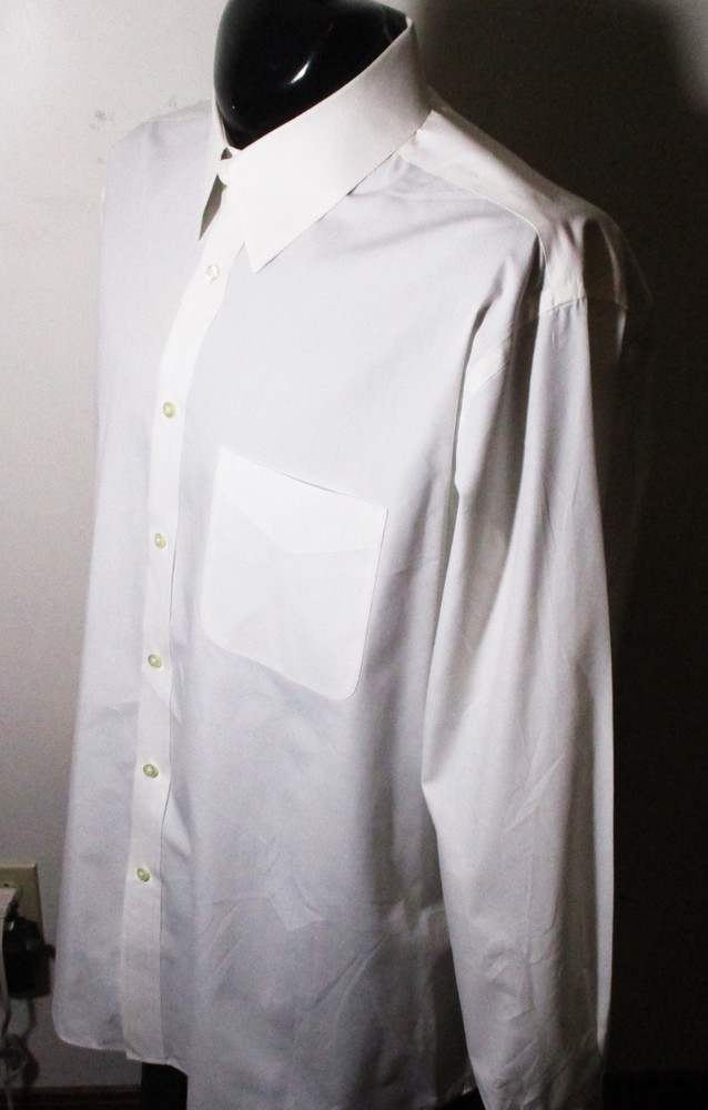 See my EBAY STORE at “SAMTPC53” to view 100’s more of my Men's Shirts!!! Combine Shipping: (on multiple items you pay full price on heaviest item first and then HALF PRICE shipping on ALL other clothes items. Men's Long Sleeve Dress Shirt. Brand: ENRO. Description: men's "ultra Poplin" ENRO long sleeve dress shirt, button front, button cuffs, pocket on front, see pics Color: White. Size: 17.5/34-35 (please see measurements). Measurements: 26" armpit to armpit, 32" shoulder to hem, 20.5" insleeve. Material: 55% Combed Cotton, 45% Polyester. Condition: Very Good condition.