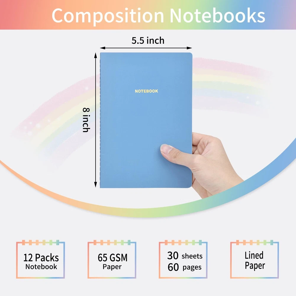 Colorful bulk journals: You will get a set of 12 cute softcover notebooks in 6 pastel colors, 2 each color Sturdy body: Made of study white card stock that won't bleed your pens, markers or highlighters Fine pages: Each piece in our notebook set is a combination of 60 sheets of scratch paper (30 sheets) with study paper, light weight, and smooth writing. Convenient size: Available in a perfect A5 size of 8 x 5.5 inches, this softcover notebook is thin and light enough to fit in almost any bag or purse. Take this lined writing journal with you on your next travel adventure and it will take up hardly any space in your bag. Widely used: This journal for teens and adults can be used as a travel journal, a meditation notebook, a mood or dream journal, a wedding diary, or just a plain old cute notepad for school.