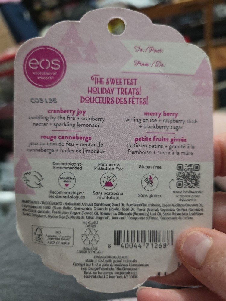 EOS 2 pc set Cranberry Joy and Merry Berry Lip Balm 0.14 oz ea.