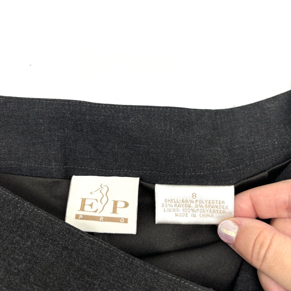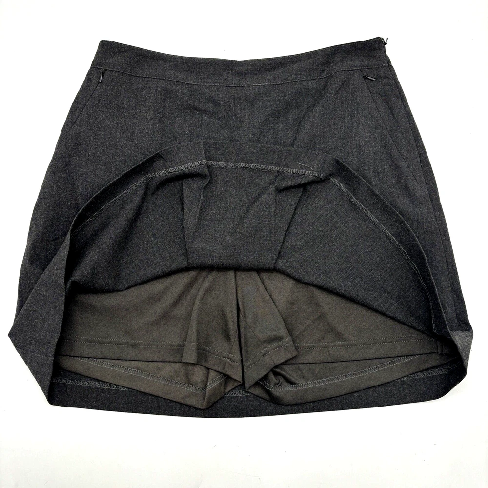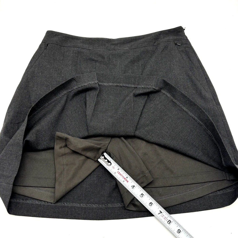 EP Pro Women's Golf Skort 64% Polyester, 33% Rayon, 3% Spandex Dark Charcoal Gray Above Knee Length Flat Front 2 Zip Pockets Zip Closure on Left Hip Stretchy Built in Shorts Moderate stretch! Women's Size 8 Please refer to measurements below to ensure accurate fit before purchase! 14.5" waist (29" circumference) 19.5" hips 23" hem 17.5" full length from waist to hem 11.5" rise on built in shorts 4.5" inseam on built in shorts Measurements made with garment laying flat. Excellent pre owned condition. Very gently owned. No rips, tears, stains, holes or other notable flaws. Clean and from a smoke free home.