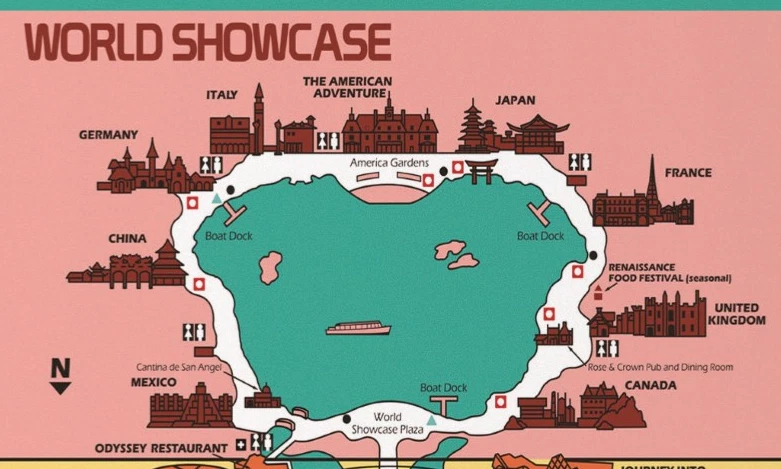 EPCOT Center Retro 80s Map Poster Print 11x17 World Showcase Future World