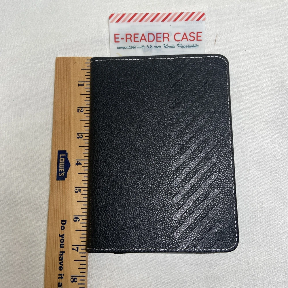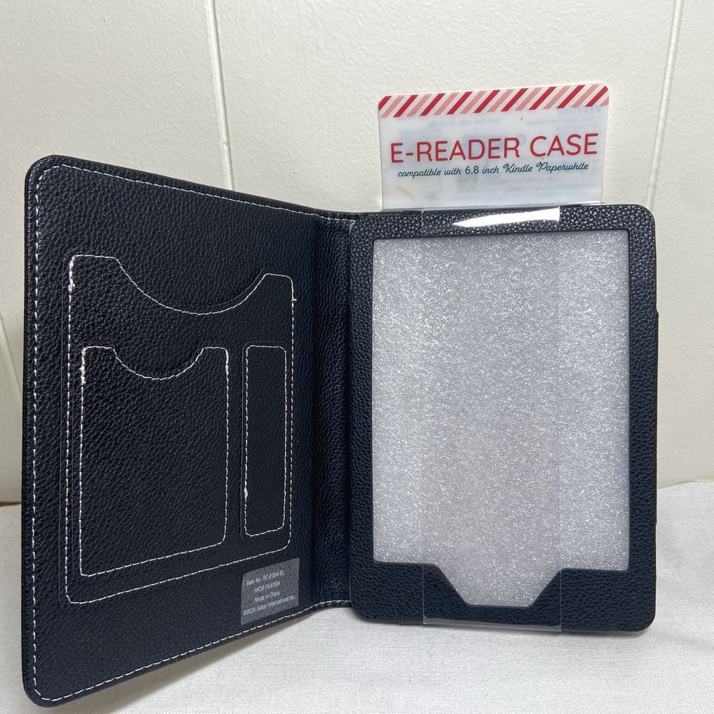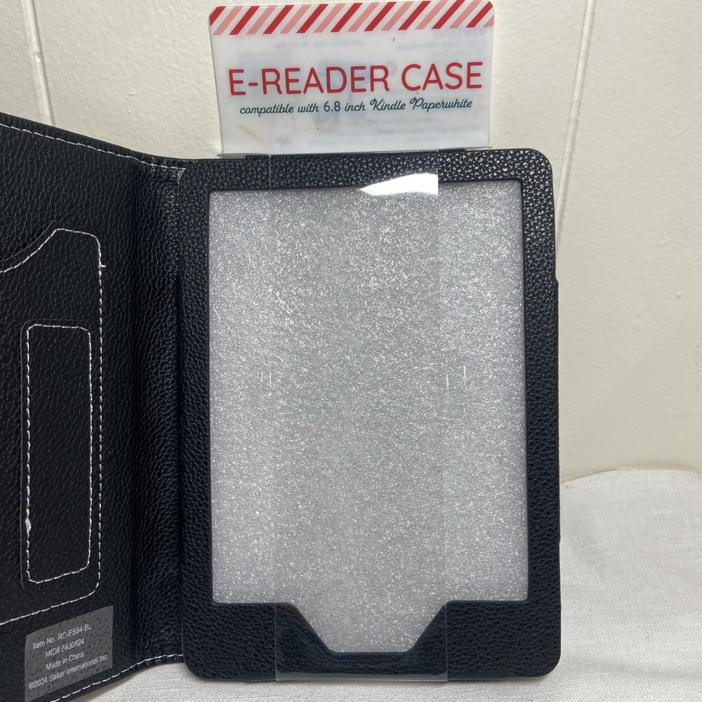 The E-Reader Kindle Paperwhite Case in black by Vivitar is a stylish and protective shell designed specifically for the Kindle Paperwhite. The case features a smart design that automatically wakes up the device when opened and puts it to sleep when closed. Made of synthetic leather, this personalized case showcases a charming Bullseye character design, adding a fun touch to your tech accessory. Perfect for keeping your Kindle safe and secure while on the go.