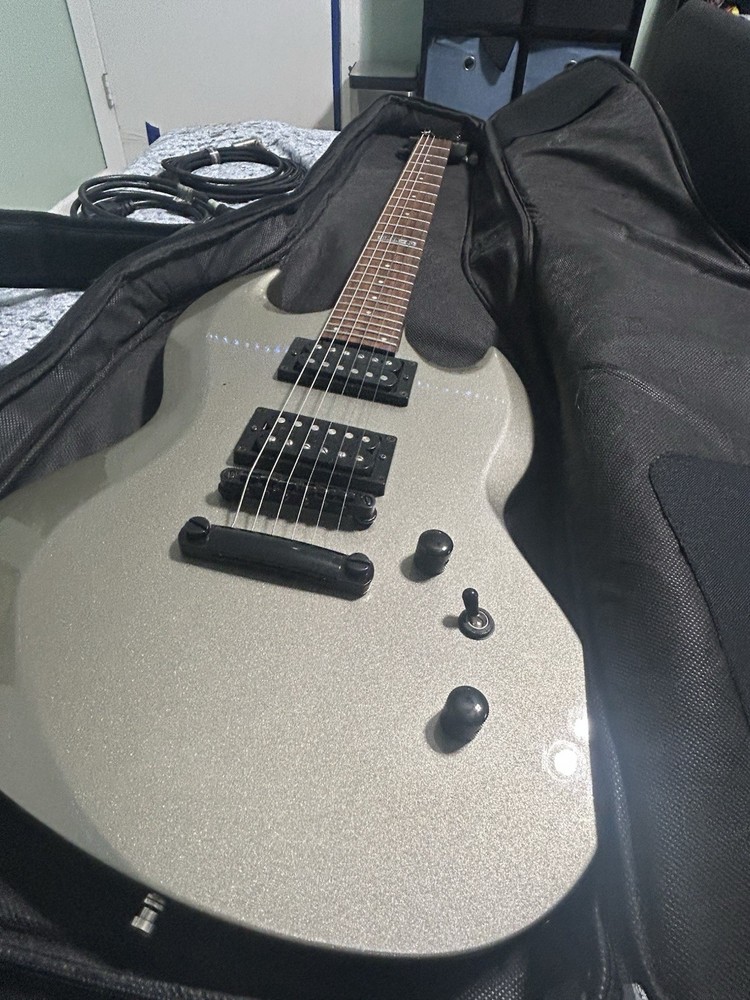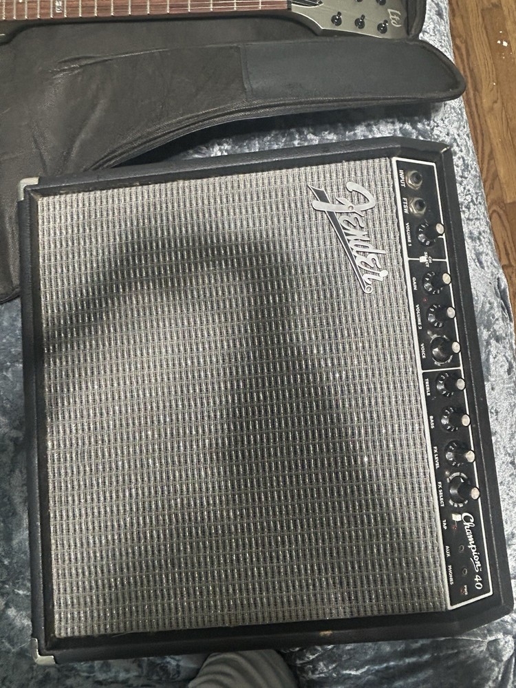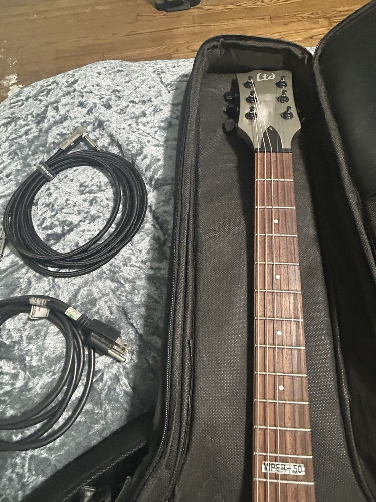 Perfect condition new esp ltd viper 50 guitar with fender amp champion 40 good condition and needed cords