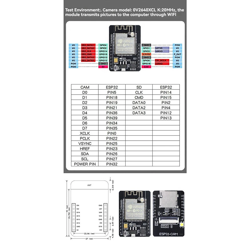 You may also like LDS Motor Gear Transmission Motor for Roborock S5/S5 MAX /S6/S6 MAX/S7/Mi 1 10.78 USD 12.68 USD Free shipping 15% off 2GT-6RF Synchronous Gear Belt Timing Belt Kit For Ender 3 3D Printer Accessory 13.09 USD 15.4 USD Free shipping 15% off For DJI Mini 3 Drone Upper Shell Drone Replacement Parts Drone Accessories 20.61 USD 24.25 USD Free shipping 15% off For Mavic 3 Gimbal Cameras Protective Cover Scratch-proof Lens Protector Cap 9.46 USD 11.13 USD Free shipping 15% off Mount Adapter Support Horizontal Vertical Shooting Camera Parts for Insta GO 3 7.47 USD 8.79 USD Free shipping 15% off 2x Carbon Fiber Decal Skin Stickers For DJI Mavic Pro/AIR/Spark Drone Decoration 5.93 USD 6.98 USD Free shipping 15% off Front and Rear Guards Metal Armor Chassis Armor Toy for KM 1/7 Rally C3 WRC 13.71 USD 16.13 USD Free shipping 15% off Metal Front and Rear Differential Gears Model Car Parts for ARRMA1/8 1/10 RC Car 24.55 USD 28.88 USD Free shipping 15% off Disc Brake Full Metal Calipers Set for RC Car TRAXXAS TRX4 TRX6 Upgrade Parts 26.74 USD 31.46 USD Free shipping 15% off For DJI Mavic Mini 2 Drone Height Extender Part Landing Gear Extensions Leg ZFS 9.26 USD Free shipping For Excavator Bulldozer RC Car Aluminum Alloy Models Hydraulic CNC Oil Filter 23.78 USD 27.98 USD Free shipping 15% off DC 28V Charger Adapter for SHARK Wireless Vacuum Cleaner Accessories 17.34 USD 20.4 USD Free shipping 15% off 3-way LED Light On/off Controller Switch Y Cable Wire For 1/10 TRX4 SCX10 RC Car 7.89 USD 9.28 USD Free shipping 15% off Hard Disk Drive Cable SSD Interface Cable Parts for Lenovo Thinkpad E14 L14 Gen1 8.01 USD 9.42 USD Free shipping 15% off Alloy Front Bracket Durable Mount for KYX 1/10 Model Car Bronco Trx-4 22.4 USD 26.35 USD Free shipping 15% off Watch Hands Modified C3 Luminous Watch Hands Watch Parts for NH35/36 Movement 5.47 USD 6.44 USD Free shipping 15% off For Wahoo ELEMNT ROAM Cycling Computer GPS Protective Silicone Cover Case Shell 8.31 USD 9.78 USD Free shipping 15% off Metal Armor RC Car Upgrade Parts Accessories For 1/8 Traxxas Sledge RC Car 17.09 USD Free shipping Product Description ESP32-CAM Development Board with OV2640 Camera Module ESP32 WIFI IoT Motherboard Features: l Made of high quality material, durable and wear-resistant l The ESP32 combines an antenna switch, RF white cloud power amplifier, receive low-noise amplifier, filter, and power management module in one device l esp32 requires very few peripheral devices, that is, to achieve powerful processing performance, reliable security and WiFi and Bluetooth functionality l ESP32-CAM camera development board compact 802.11b/g/n Wi-Fi + BT/BLE SOC module can be widely used in a variety of IoT occasions, suitable for home smart devices, industrial wireless control, wireless monitoring, or wireless identification, wireless positioning system signals, and other IoT applications, it is the ideal solution for IoT applications, can be used as a mode of It is an ideal solution for IOT applications, and can be used as a mode to build an independent network controller, or as a slave to be mounted on other host microprocessors to increase the networking function for existing devices Specifications : l Material: Metal l Size: 27x 40.5x 4.5mm l Types (Optional): ESP32-CAM Motherboard, ESP32-CAM Motherboard + Camera, ESP32-CAM Motherboard + Camera + Download Dock P ackag e: l 1x ESP32-CAM Motherboard Or l 1x ESP32-CAM Motherboard + 1x Camera Or l 1x ESP32-CAM Motherboard + 1x Camera + 1x Download Dock About Us Payment Shipping Returns Feedback Our company is located in China, East Eight Zone, woking time is 9:00 to 18:00, from Monday to Friday. We mainly accept payment through PayPal . Payment should be done within 7 days after the end of the Auction. Otherwise Unpaid Item Dispute will be filed with eBay. International Buyers Please Note: a) Import duties, taxes and charges are not included in the item price or shipping charges. These charges are the buyer's responsibility. b) Please check with your country's customs office to determine what these additional costs will be prior to bidding/buying. We ship items to your PayPal confirmed address only. Please make sure your address in PayPal is matched with your shipping address before you pay. We are unable to take any responsibility for wrong address, any custom delay or tax. Transit time is highly depended and provided by Postal Service. All items will be dispatched within 1 business day after receipt of payment. Please notice that orders placed on weekends and public holidays will be dispatched on the next working day It may take longer to other countries or remote areas. If you have not received your shipment within 30 days from payment, please contact us. We will track the shipment and get back to you as soon as possible with a reply. Our goal is 100% customer satisfaction. We back our products with a 30-DAY SATISFACTION GUARANTEE! Customers should inspect item(s) and notify us within 30 days of any problems. If you have a problem with your item, please contact us before leaving feedback. All items being returned must be issued an RMA number BEFORE they are returned. Return shipping is to be paid by the Buyer. 12 months Warranty from the date of purchase covering manufacturing defects. This warranty excludes any damage caused by the user. We greatly appreciate your 5-Star POSITIVE Feedback . We have a program which automatically replies as soon as you leave your feedback. We aim to offer each of our valued customers the 100% Satisfaction Product and Service . So if you have any problem, please e-mail us immediately before leaving neutral/negative feedback. We will give you a satisfying solution according to your will. All communications are handled through Email. We strive to answer all emails as fast as we can. About Us Our company is located in China, East Eight Zone, woking time is 9:00 to 18:00, from Monday to Friday. Payment We mainly accept payment through PayPal . Payme