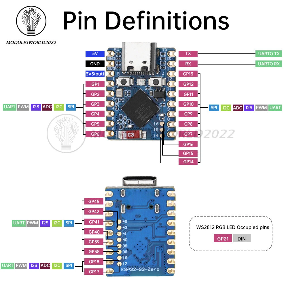 Store Categories Store Categories Other Product View Details Features 1. Equipped with high-performance Xtensa® 32-bit LX7 dual-core processor with 240MHz. 2. Supports 2.4GHz Wi-Fi (802.11 b/g/n) and Bt® 5 (LE). 3. Built-in 512KB SRAM and 384KB ROM, stacked with 4MB Flash and 2MB PSRAM. 4. Adopting stamp hole design and on-board ceramic antenna, easy to integrate into user-designed backplane. 5. Support flexible clock, module power supply separate settings and other controls, to achieve multi-scenario low-power mode. 6. Integrated USB serial port full-speed controller, leading to 34 GPIO can be flexibly configured peripheral functions. 7. With 4xSPI, 2xI2C, 3xUART, 2xI2S, 2xADC and other peripherals. 8. Based on ESP32-S3 FH4R2, pin out most of the pins under small board type, using half-hole process, can be soldered on customized board. Specification Processor: ESP32-S3 FH4R2 dual-core processor, up to 240MHz operating frequency Interface: USB Type-C interface Current: (Max) 800mA Antenna: 2.4G ceramic antenna Button: BOOT button, press and then press reset to enter download mode. RESET reset button LED:WS2812 Cool RGB LED Size: 23.5*18mm List 1 x Development Board 2 x Pin Header (Soldering or unsoldering optional) Shipping Policy Payment Method Returns Policy Shipping Policy Payment Method Returns Policy Home Payment Shipping About us Contact us Copyright©2018 datacaciques Home Payment Shipping About us Contact us Store Categories Store Categories Other Product View Details Features 1. Equipped with high-performance Xtensa® 32-bit LX7 dual-core processor with 240MHz. 2. Supports 2.4GHz Wi-Fi (802.11 b/g/n) and Bt® 5 (LE). 3. Built-in 512KB SRAM and 384KB ROM, stacked with 4MB Flash and 2MB PSRAM. 4. Adopting stamp hole design and on-board ceramic antenna, easy to integrate into user-designed backplane. 5. Support flexible clock, module power supply separate settings and other controls, to achieve multi-scenario low-power mode. 6. Integrated USB serial port full-speed controller, leading to 34 GPIO can be flexibly configured peripheral functions. 7. With 4xSPI, 2xI2C, 3xUART, 2xI2S, 2xADC and other peripherals. 8. Based on ESP32-S3 FH4R2, pin out most of the pins under small board type, using half-hole process, can be soldered on customized board. Specification Processor: ESP32-S3 FH4R2 dual-core processor, up to 240MHz operating frequency Interface: USB Type-C interface Current: (Max) 800mA Antenna: 2.4G ceramic antenna Button: BOOT button, press and then press reset to enter download mode. RESET reset button LED:WS2812 Cool RGB LED Size: 23.5*18mm List 1 x Development Board 2 x Pin Header (Soldering or unsoldering optional) Shipping Policy Payment Method Returns Policy Shipping Policy We will arrange shipping for you within 24 Hours after payment cleared except the holidays. -We ship items to Worldwide. Thank you! -we will ship out the order in 1-2 business days after payment cleared .Since it is international shipping ,delivery time is about 15--28 business days to arrive to most countries. Payment Method We accept PayPal payment ONLY, and must be received within 5 days from the date of purchase. 2. It is easy and safe for you to pay by credit cards, debit cards, bank transfers and PayPal account balances. 3.Buyers are responsible for import duties,custom fees and taxes, if any, please check your country. Returns Policy 1.We believe our items are so outstanding. We are convinced you will be happy with your Purchase. 2. If you do not satisfy with our items. Please simply return to us within 30 Days in original condition. Just pay for the returned postage. Then we can issue full refund or resend the item to you after the returned item arrived at our warehouse. 3. Please include your eBay ID and item number with any email requests.