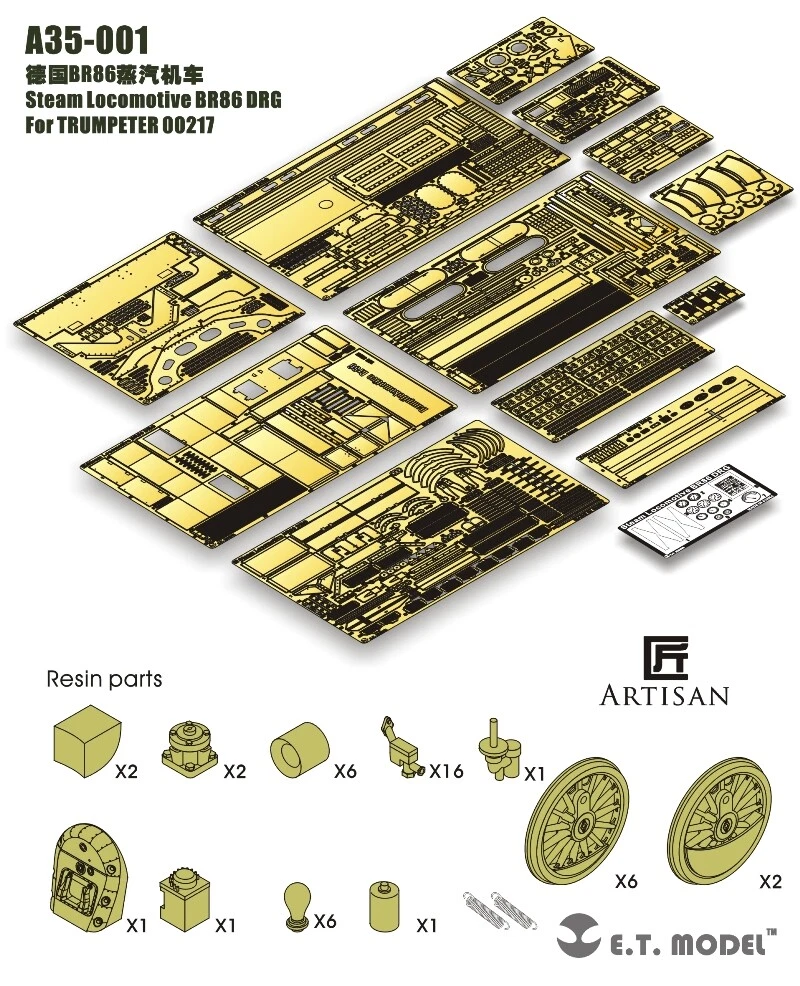 Welcome to my e b a y stor e Product Overview ET Model 1/35 A35-001 Steam Locomotive BR86 DRG Detail Up part For TRUMPET 00217 Detail Hello, Model fans. Thank you for visiting my eBay store. I hope you can find your favorite assembly models here. Due to ebay's policy, I set up a long delivery time, but please don't worry, your delivery time will be much faster than expected. Generally, I will ship in 3 working days and will arrive in your hands about 20 working days. Assembly models fans is big family. Welcome to communicate with me. I am also a fans already for 10 years. *ET Model 1/35 A35-001 Steam Locomotive BR86 DRG Detail Up part For TRUMPETER 00217 Not include Tank model 1,If you buy it now, we will sent you a Special Gift !! 2,If you want to get it early,please visit our store! 3, If you do not receive your package within the deadline, pls contact the us. We will try my best to help you , Pls do not leave a negtive feedback, we can help you to resolve any problem. 4, All questions we receive on the weekends will be answered the first business day that follows. Reviews Shipping Policy Payment Method Returns Policy About Feedback Shipping Policy S hipping Description: * Your order will be shipped from our warehouse where the item has been accurately picked, securely packed and shipped in a professional manner. tax authorities before bidding. However , most of our items can reach to buyers without any taxes Payment Method Methods of payment we accept: * We accept payment by paypal only. * Keep in mind that PayPal E-Checks will take 3-14 business day to clear . Once your E-Checks clears, your item will be dispatched to you within 1 working day. Returns Policy 1. Customer satisfaction is our top goal. We believe our items are so outstanding. All products are quality checked. They are new and in good condition when shipped to our customers. We are convinced you will be happy with your Purchase. 2. If product is defective or damage upon arrival, or wrong product shipped, please contact us immediately. Returns accepted within 14 days of delivery date and item must be in original new condition, not worn or altered in any way with attached tags & wrap. Otherwise deal is final. Return shipping must be paid by buyer. 3. Please contact us first if you have any problems/questions/concerns. We will be happy to resolve any issues you may have in a cordial and friendly manner. 4. We appreciate your Postive Feedback, and will do the same in return. DO NOT leave negative feedback without first communication with us. Please allow max 2 business days for us to response. About Feedback When you satisfied with our product and services please leave us positive feedback. If a problem occurs, contact us immediately with any email request. Just contact us using the " Ask the seller a question" link on eBay. If you do not receive your package within the deadline, pls contact the us. We will try my best to help you , Pls do not leave a negtive feedback, we can help you to resolve any problem.