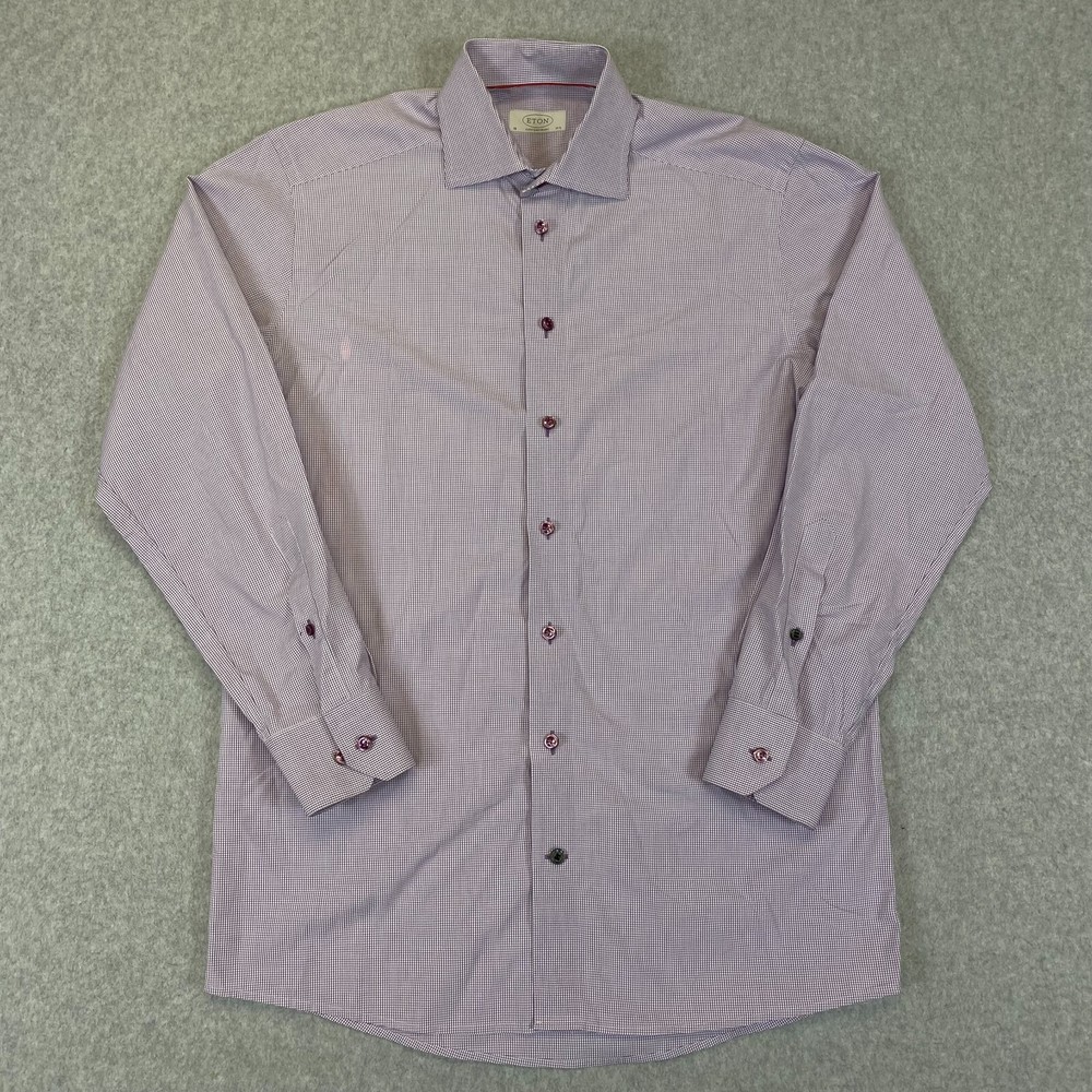 ETON Shirt Men's 15.5-39 Purple Check Long Sleeve Classic Contemporary Button Up Item: The photos provided depict the actual item you will receive. Any defects or spots will be clearly shown in the photos. Shipping: We offer fast and reliable shipping! All orders will be provided with a tracking number to ensure that your item arrives promptly. Return Policy: 30-day hassle-free returns. See our return policies for details. Feel free to reach out to us through eBay with any questions!