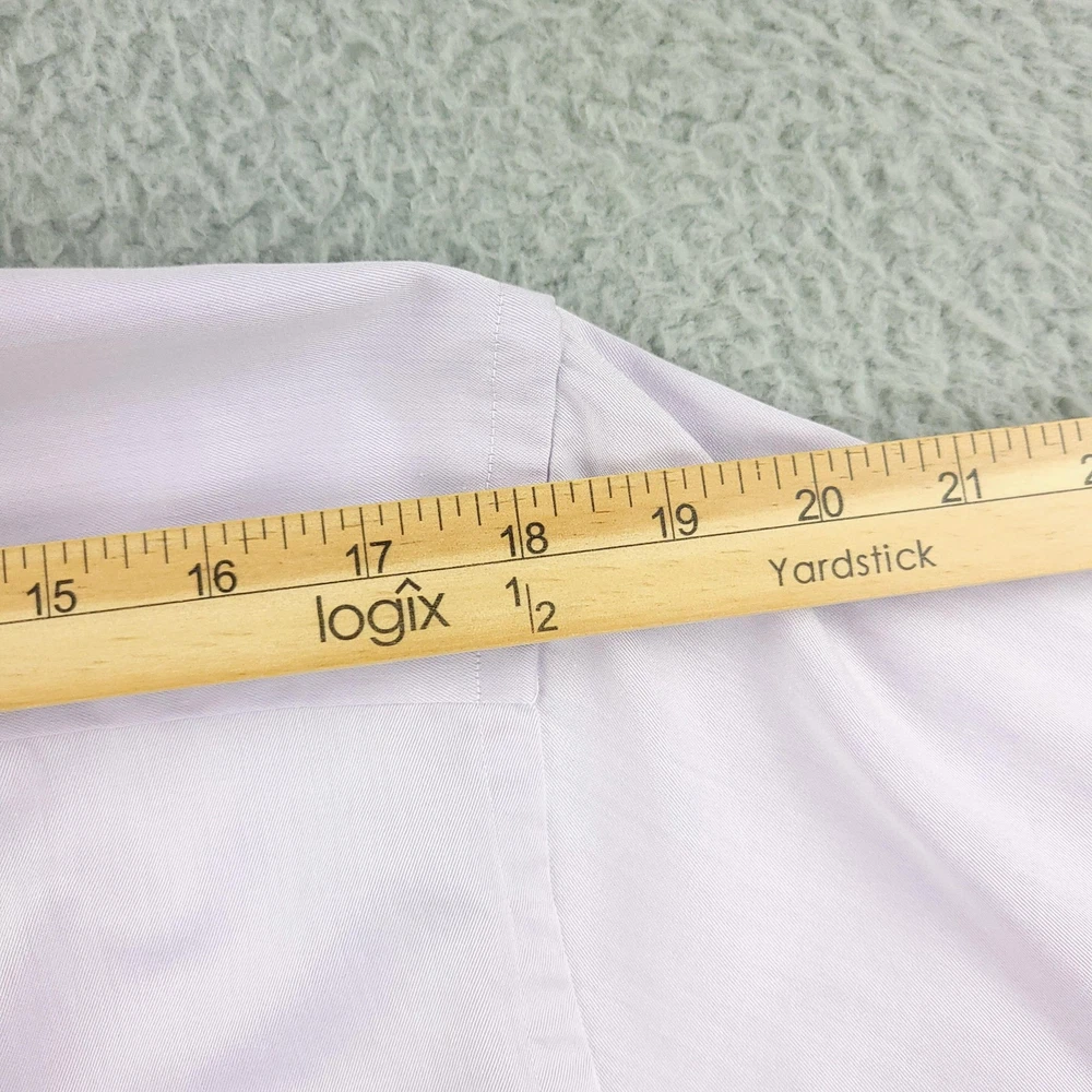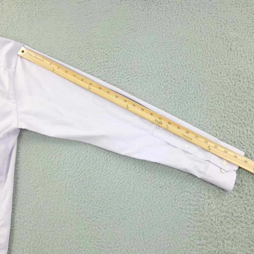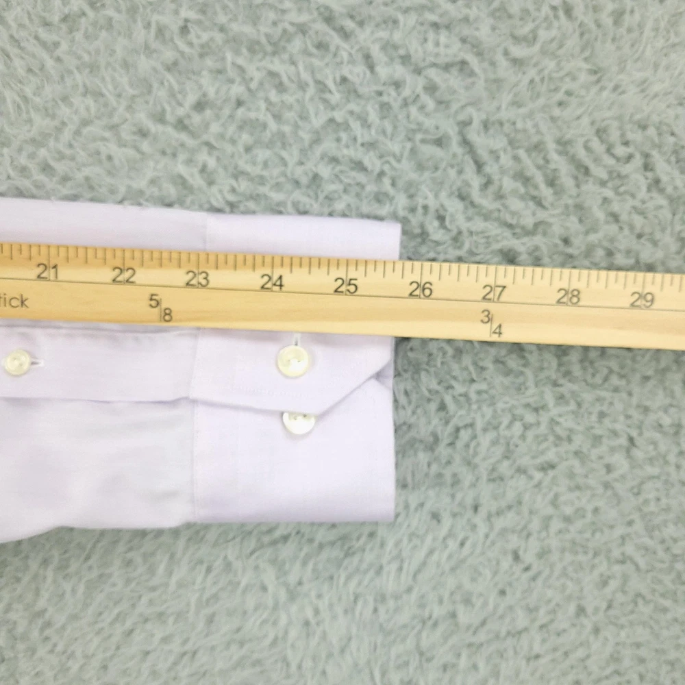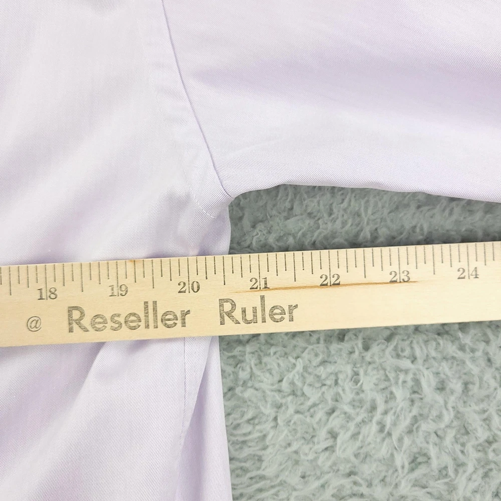 Brand: ETON Item: Mens long sleeve dress shirt with button front and barrel cuffs. Color: Light purple/lavender. Fit: Slim fit tailoring. Size on tag: 43 / 17 (neck 17, approximate EU 43). Material: 100% cotton (per care tag). Country of origin: Made in Romania. Design details: Classic spread collar, front button closure, double-button barrel cuffs, curved hem, smooth solid fabric suitable for business or formal wear. Washed and dried with Fragrance Free Detergent & Dryer Sheets. Measurements are included in the photos, compare measurements with your item to ensure proper fit. (Measurements are done with the item lying flat). I ship next business day and all items include tracking. Items are added daily to my store Visit My Store Buy More & Save! Combined shipping for US customers - $1.99 for each additional item (Add items to shopping cart and discounts will automatically calculate during checkout)