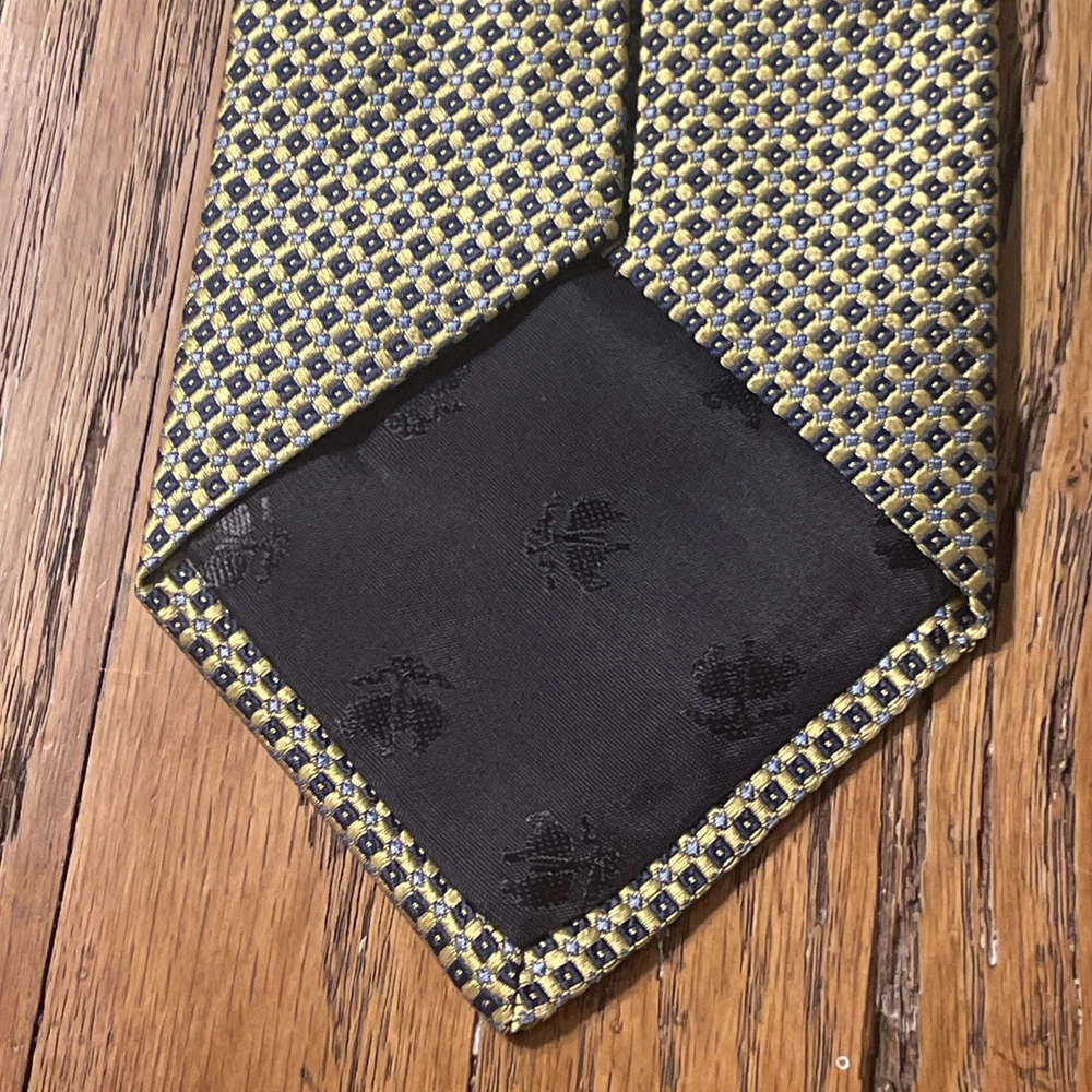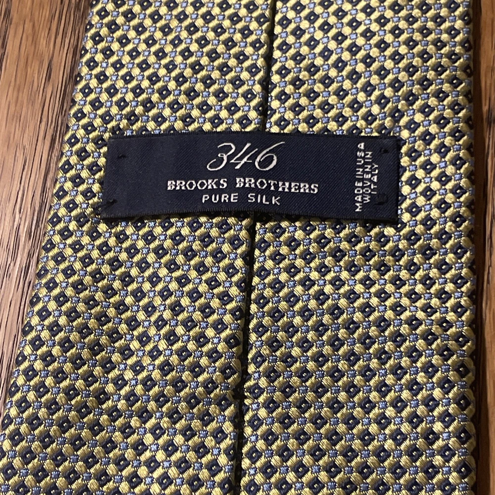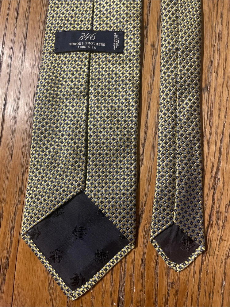 This product is a high-quality, designer Brooks Brothers 346 woven silk geometric stripe tie, made in the USA. Featuring a classic multicolor geometric pattern, this necktie is perfect for men who appreciate preppy style. Made from 100% silk, it offers a luxurious feel and adds a touch of sophistication to any outfit.