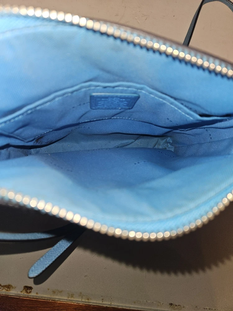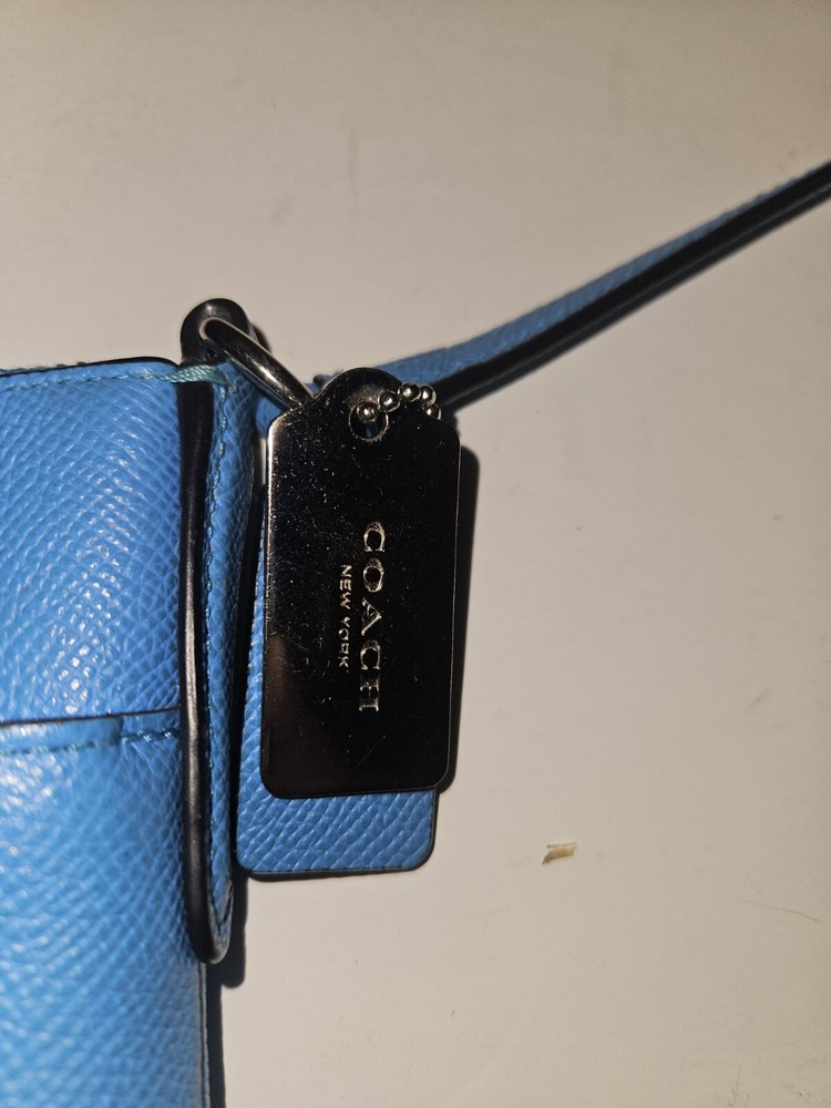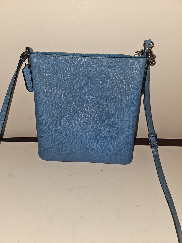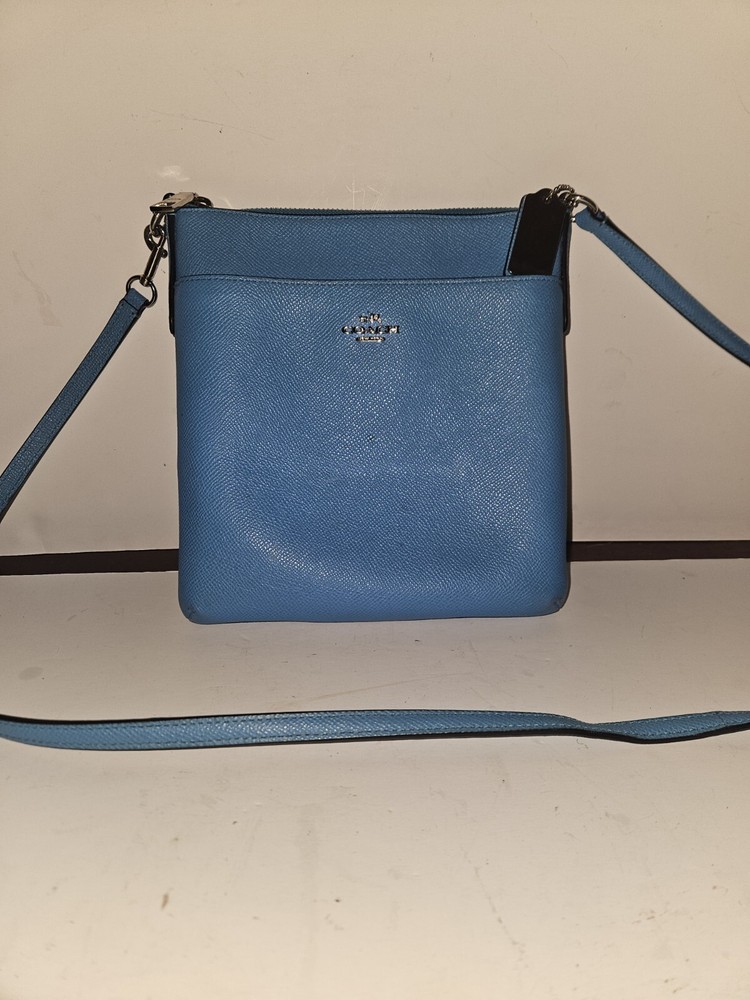 EUC COACH Crossbody NorthSouth Swingpack, Blue Pebble Leather w/ Silver Hardware. Condition is Pre-owned. Shipped with USPS Ground Advantage.