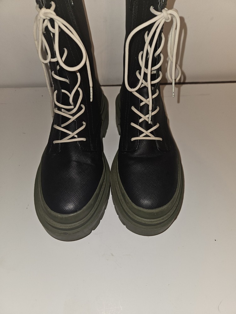 EUC Cool Planet by Steve Madden Black and Moss Combat Boots Lace Up Size 7.5. Condition is Pre-owned. Shipped with USPS Ground Advantage.