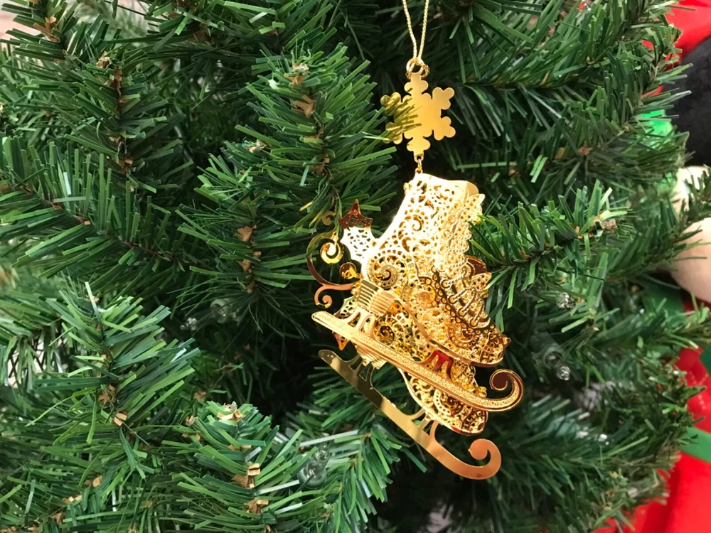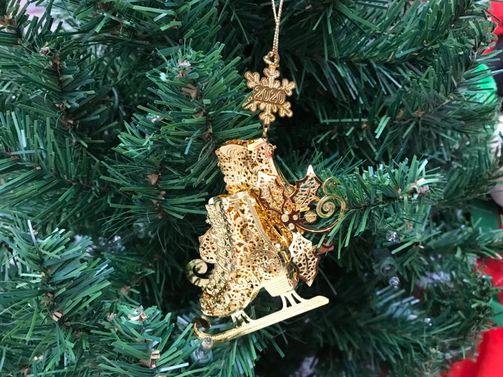 You are bidding on an excellent used condition Danbury Mint 2020 Annual Gold Christmas Ornament featuring Shimmering Ice Skates.It is made of 23Kt gold. The detail is exquisite on both sides of the ornament. It is part of the Annual Ornaments collection. This elegant ornament adds a touch of luxury to holiday decorations. The ornament has a hanging snowflake tag with 2020 in the center top. This is from my personal collection and comes from my smoke free home. I have displayed it on my Christmas tree and stored it nestled in the egg crate type of packing in the original Danbury Mint box. Winning bidder to pay $6.00 for Insured Ground Advantage shipping to a US address. Discounted shipping available if multiple ornaments are purchased and shipped to same address. Payment due within 2 days after the end of the auction. Please be certain that this is the ornament and year that you want since all sales are final. Please feel free to message with any questions. Thanks for looking. I will be listing some other Danbury Mint gold ornaments over the next few days. Happy New Year!