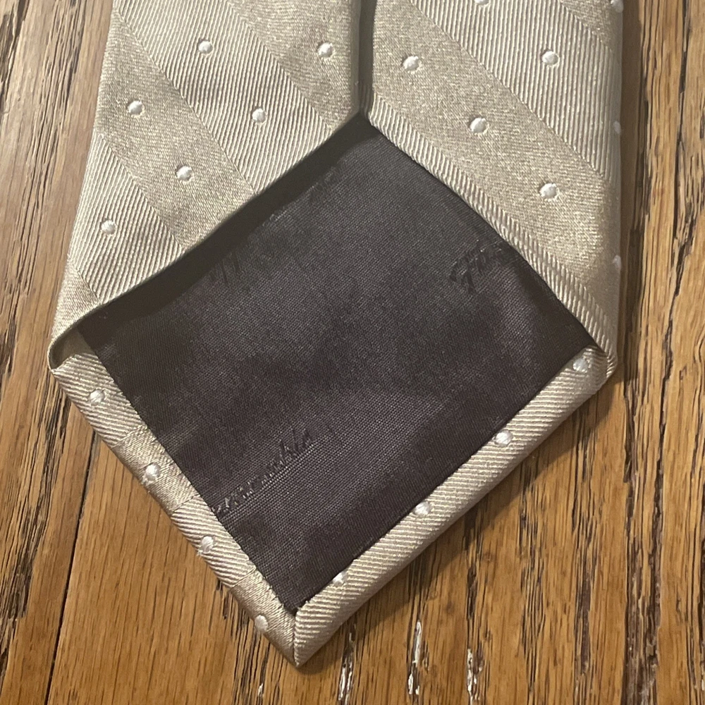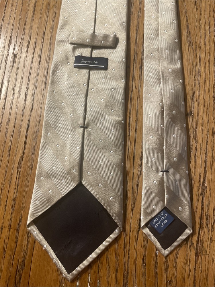 The Faconnable Woven Silk Striped Dot Tie is a high-quality men's necktie made in Italy. This designer accessory features a classic multicolor striped pattern with dot accents, perfect for a preppy and sophisticated look. Made from 100% silk fabric, this tie exudes luxury and style, making it a versatile addition to any man's wardrobe.