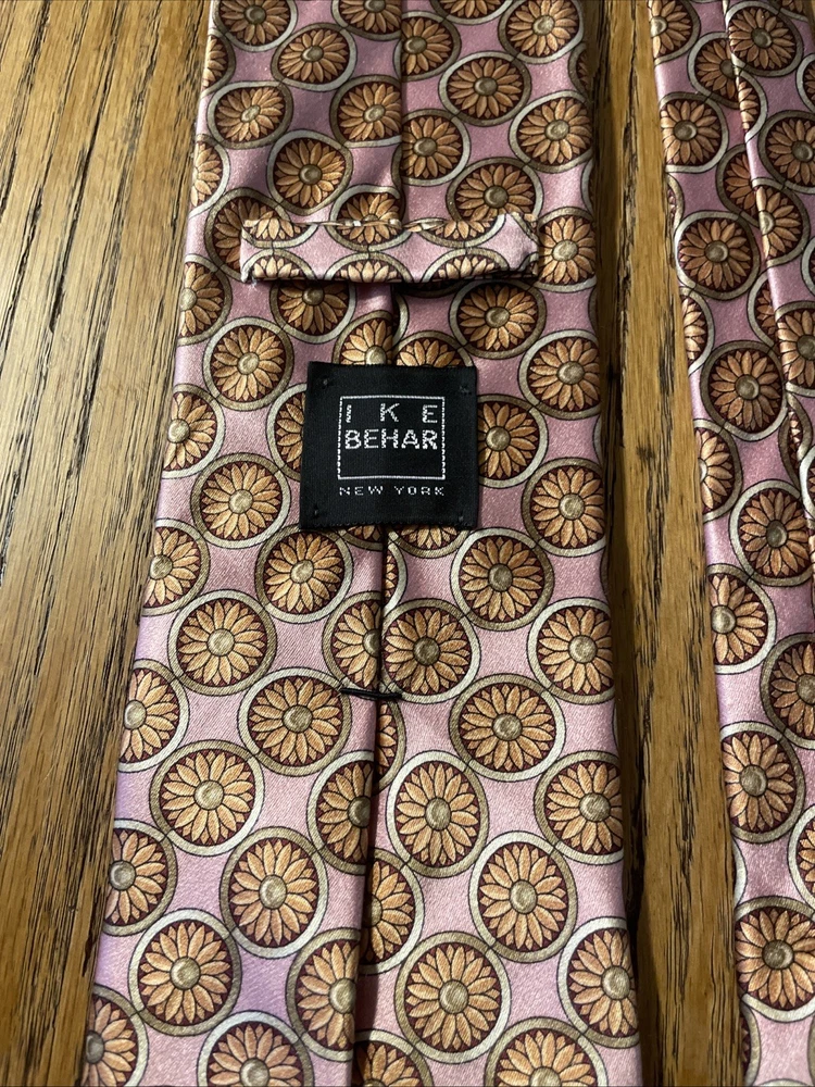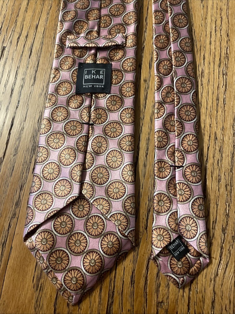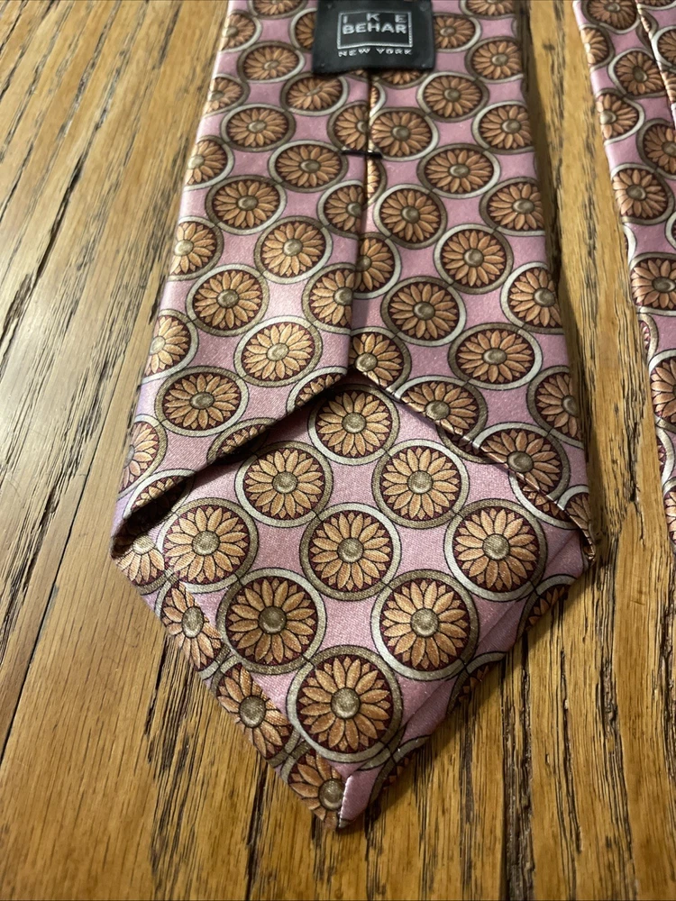 The EUC Ike Behar Thick Silk Satin Foulard Tie is a high-end designer necktie made in the USA. Hand-tailored from 100% silk with a classic width, this multicolor floral foulard tie exudes a sophisticated and stylish look perfect for formal occasions. Its quality craftsmanship and unique design make it a standout accessory for any man's wardrobe, adding a touch of elegance and power to any ensemble. Ideal for the modern gentleman looking to make a statement with their attire.