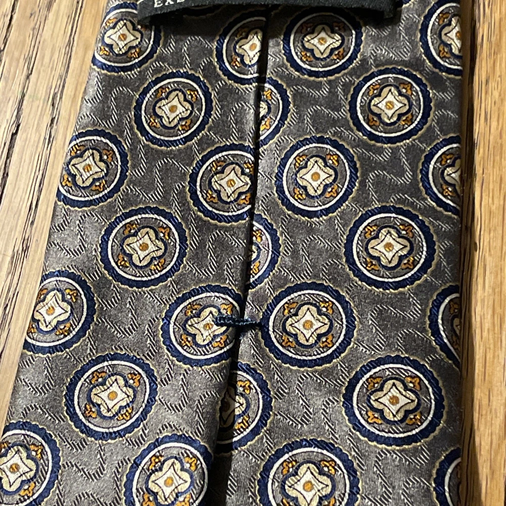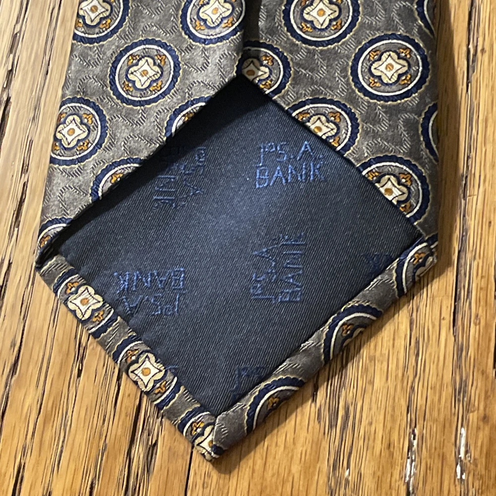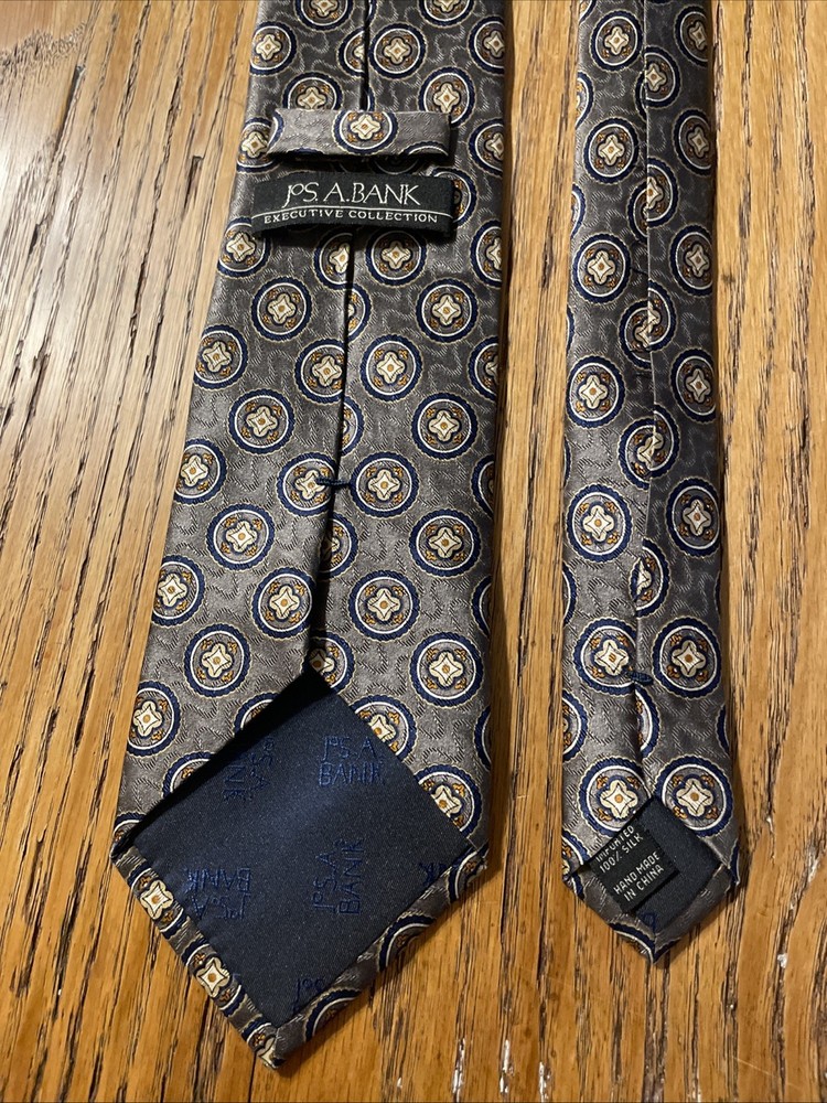 The EUC Jos. A. Bank Executive Collection Silk Medallions Tie is a high-quality designer necktie made from 100% silk satin. This classic tie features a multicolor medallion pattern, perfect for adding a touch of preppy style to any outfit. Handmade with attention to detail, this vintage piece is sure to elevate any man's formal look with its sophisticated design and excellent craftsmanship.