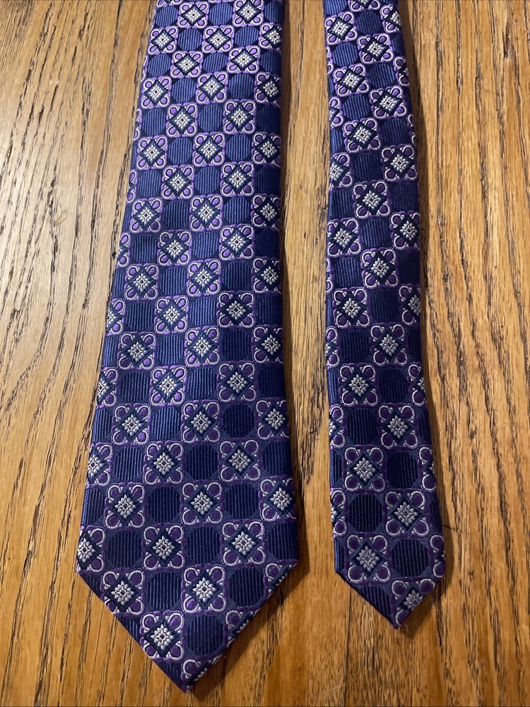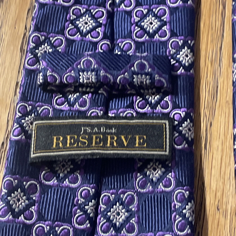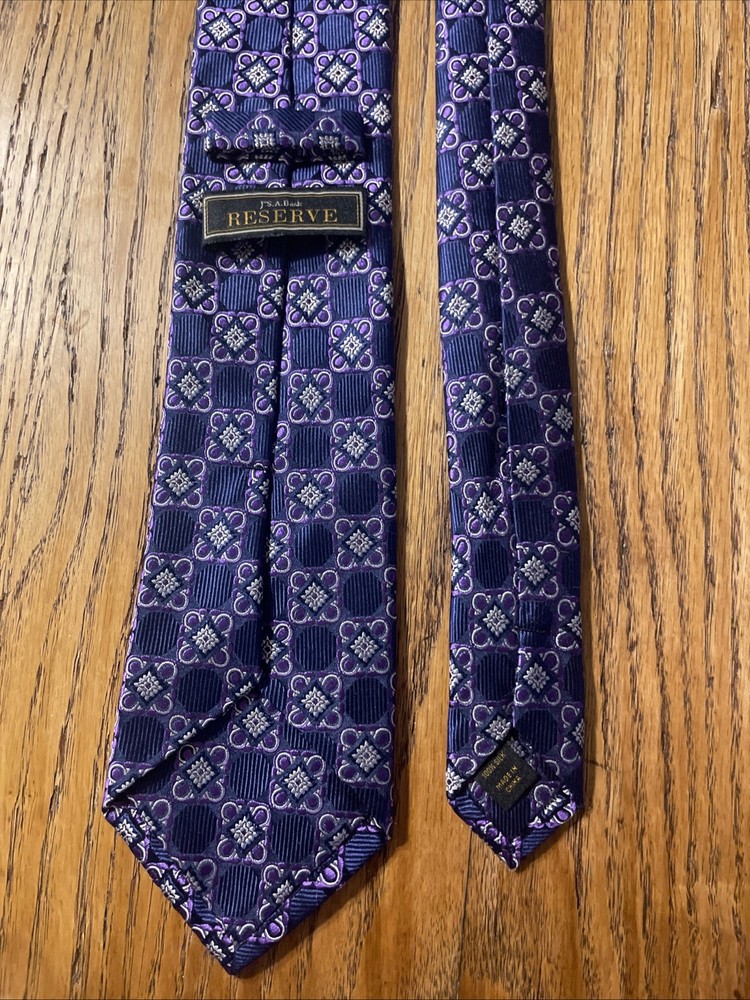 The EUC Jos. A. Bank Reserve Thick Woven Silk Foulard Tie is a designer accessory for men, featuring a classic width and a preppy style. Made from 100% silk with a woven fabric type, this multicolor tie is perfect for adding a touch of sophistication to a formal outfit. The intricate Foulard pattern adds a unique and stylish element, making it a versatile piece for any occasion. With its quality construction and timeless design, this tie is a must-have for any man's wardrobe.