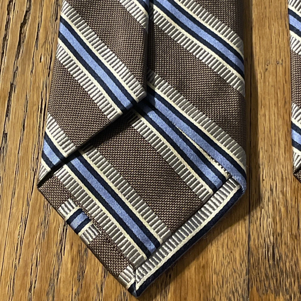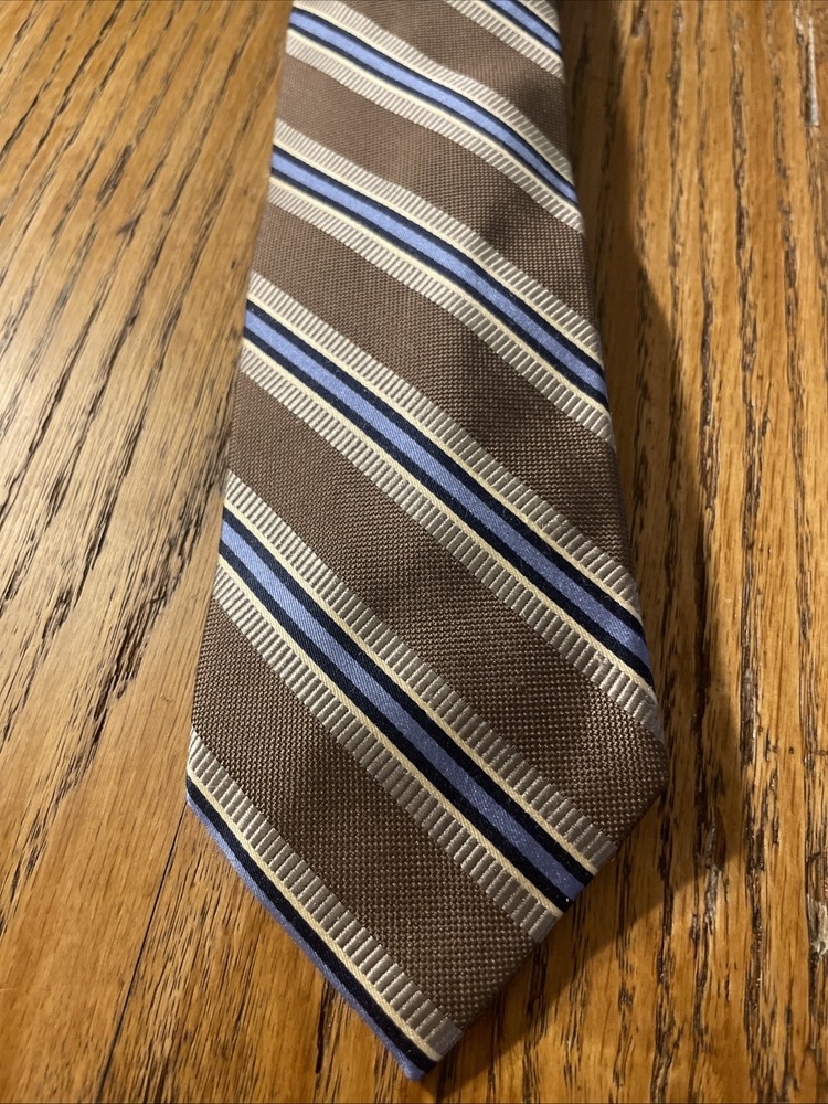 The EUC Jos. A. Bank Signature Collection Thick Silk Striped Tie is a luxurious and high-quality designer accessory for men. Made from 100% silk with a woven fabric type, this multicolor tie exudes a preppy style perfect for formal occasions. The classic width and striped pattern add a touch of sophistication to any outfit, making it a timeless choice for the discerning gentleman.