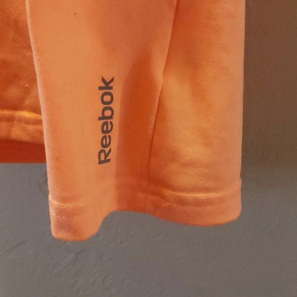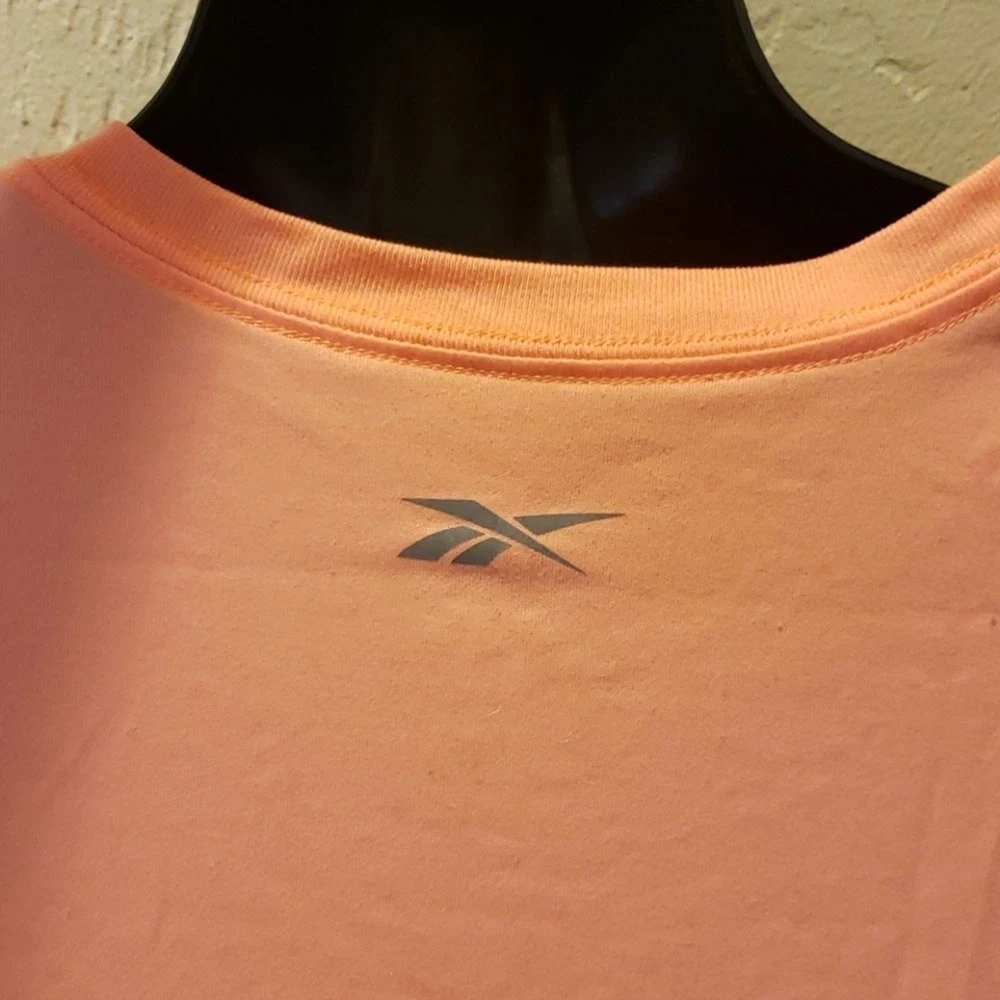 This Reebok short is in great condition with no stains or holes. It is a woman's size S and measures approximately 17.5" from armpit to armpit and 25" from shoulder to hem.