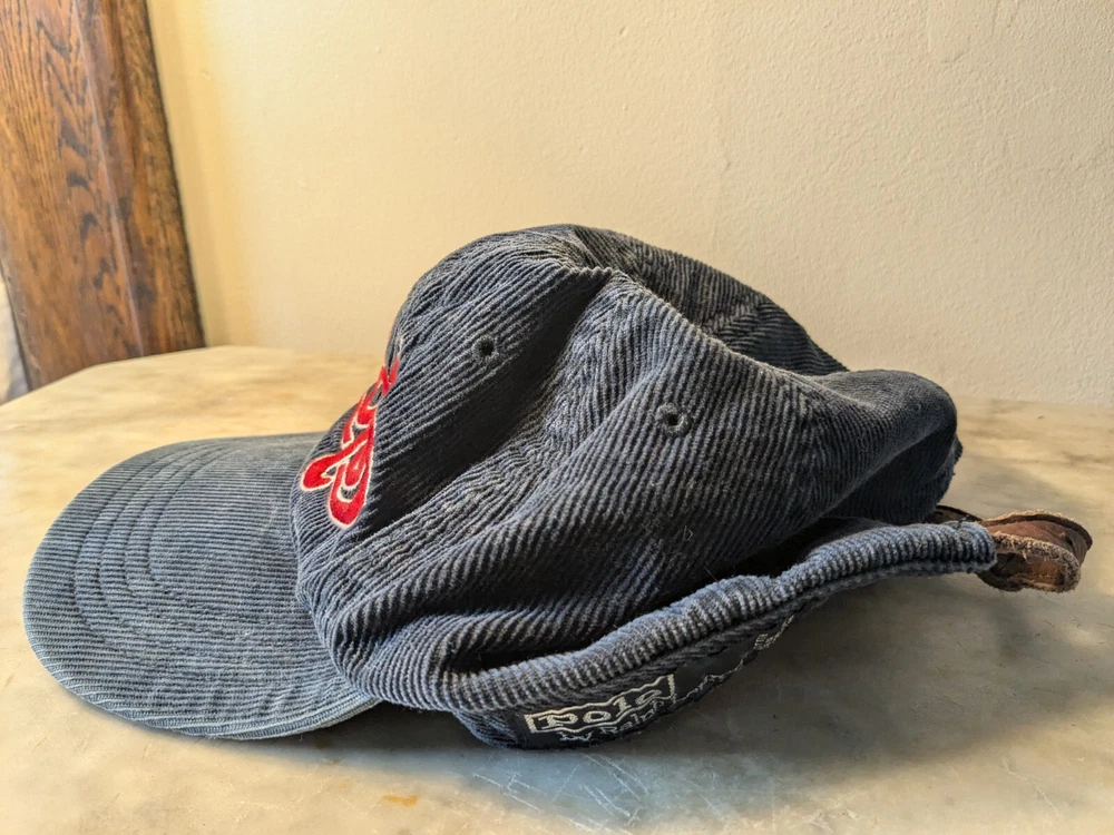 This hat is in excellent condition. There's a little bit of wear but honestly this hat has plenty of life left in it. Please ask if you have any questions. This vintage Polo Ralph Lauren corduroy baseball cap is a must-have for any 90s sports enthusiast. The hat features an embroidered Polo Ralph Lauren logo in navy and red, making it a stylish accessory for any casual occasion, party, or travel. The hat is made of a combination of leather and cotton materials, making it both lightweight and comfortable to wear. It is adjustable in size to ensure a perfect fit for any head size. This hat is a true vintage find, perfect for anyone who loves classic styles.