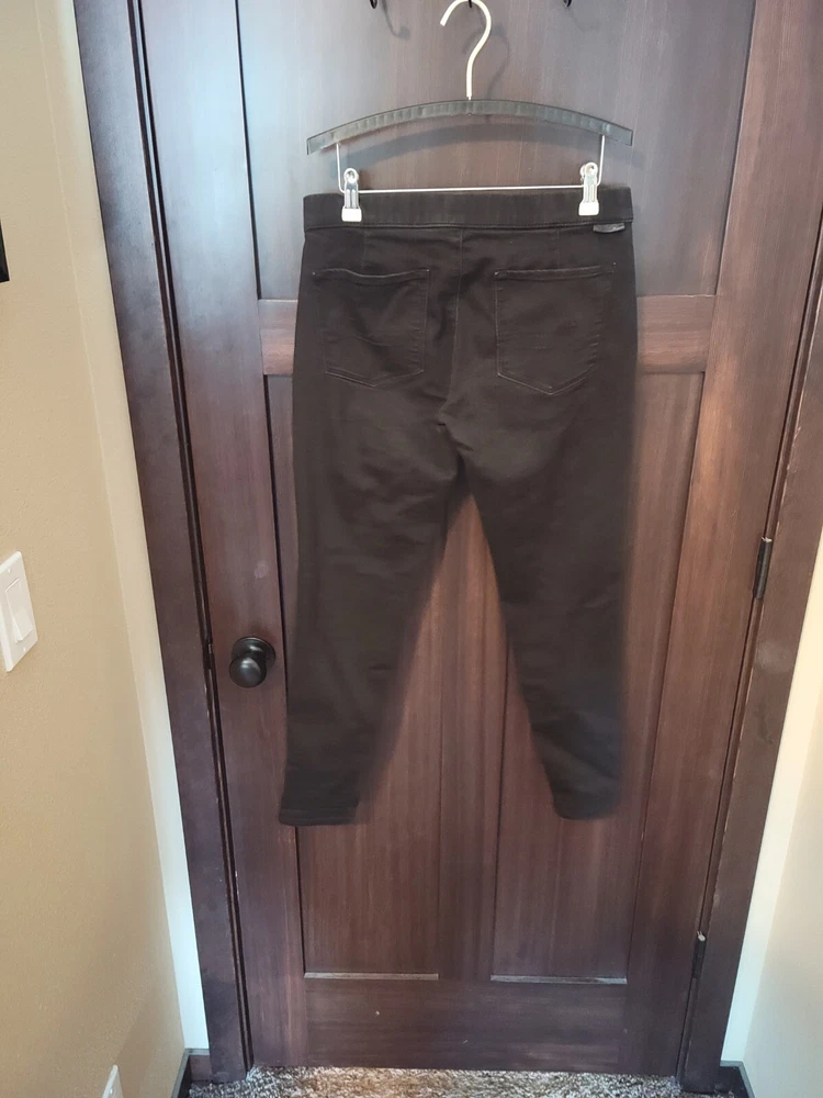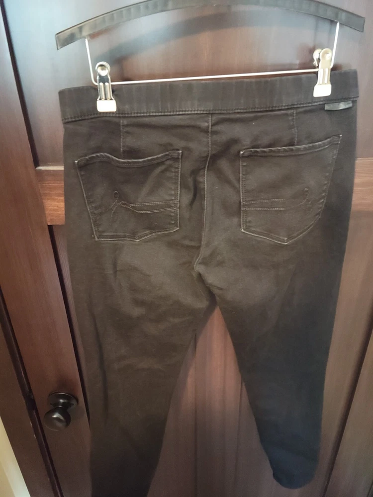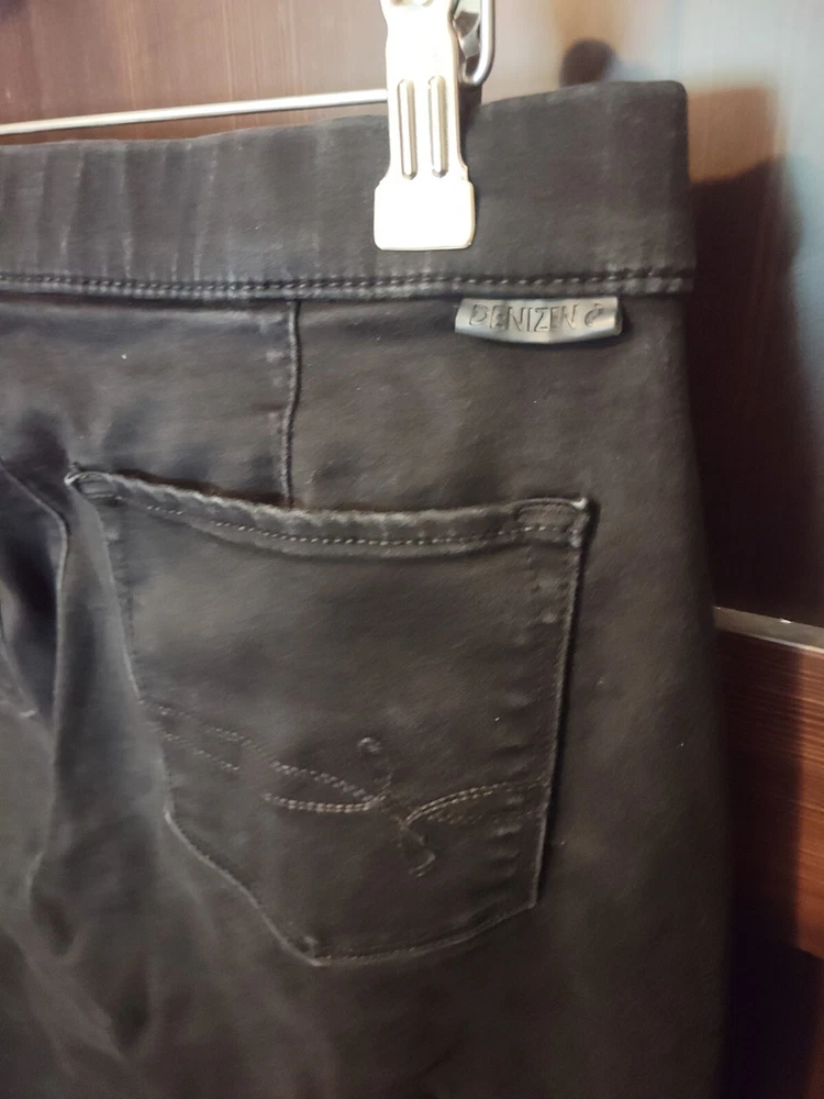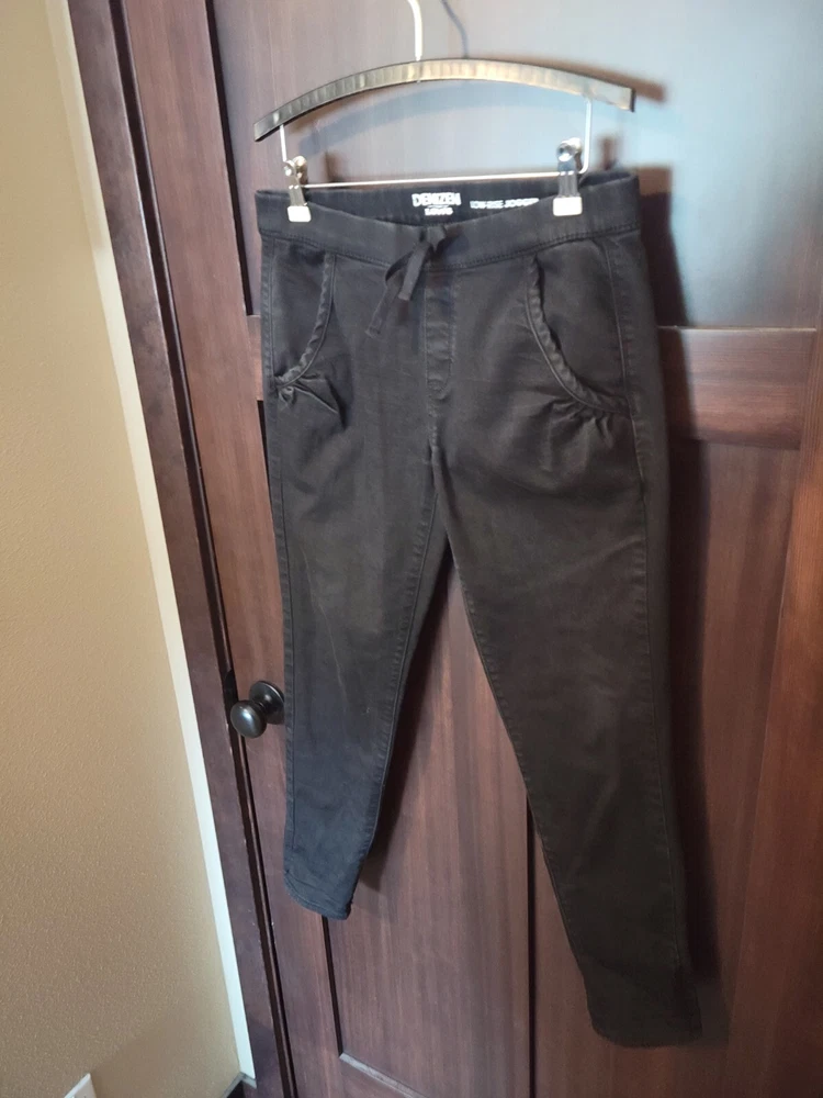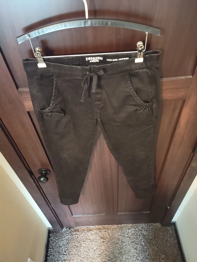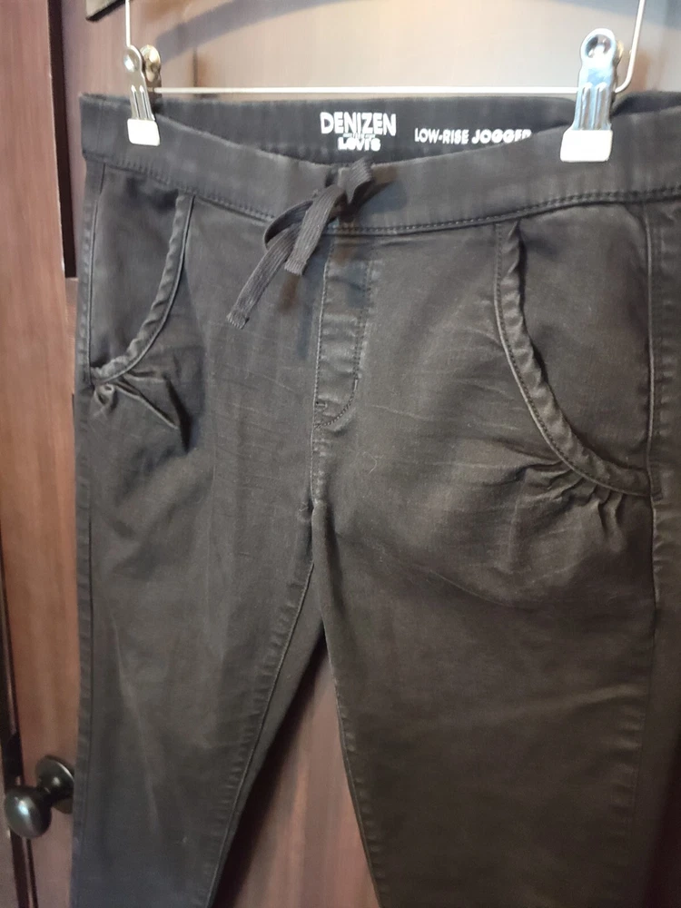 EUC Denizen from Levi's Low Rise Jogger Jeans Black Stretch Denim Size Small. These are in excellent used condition, very stretchy. Cotton Polyester Spandex Waist: 15" flat across Length: 35" Inseam: 28"