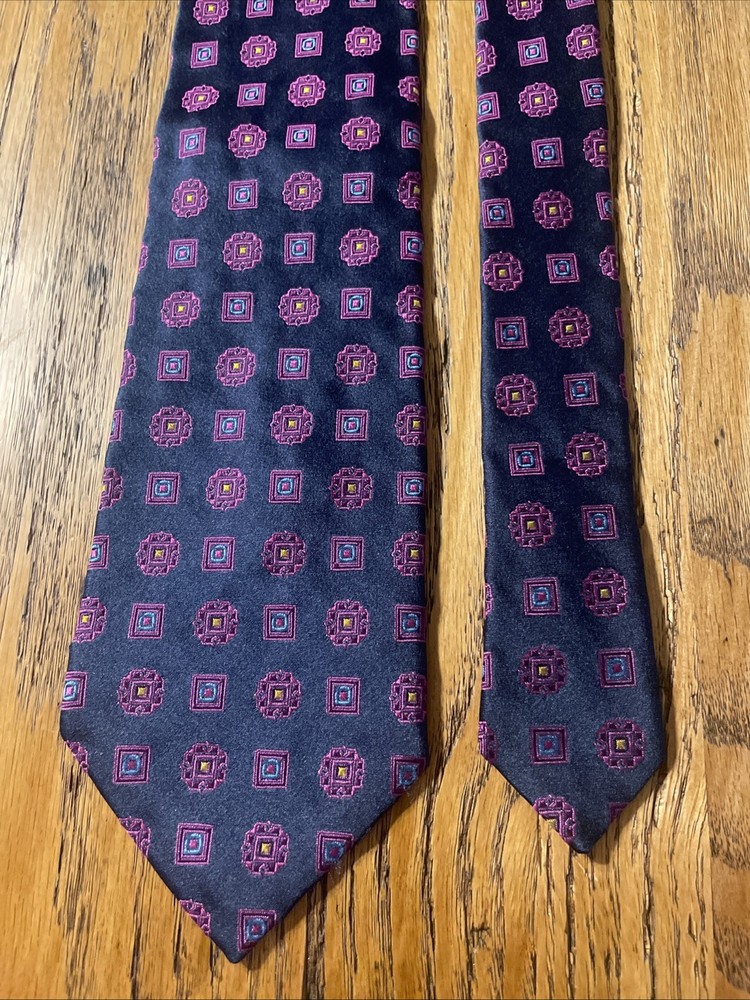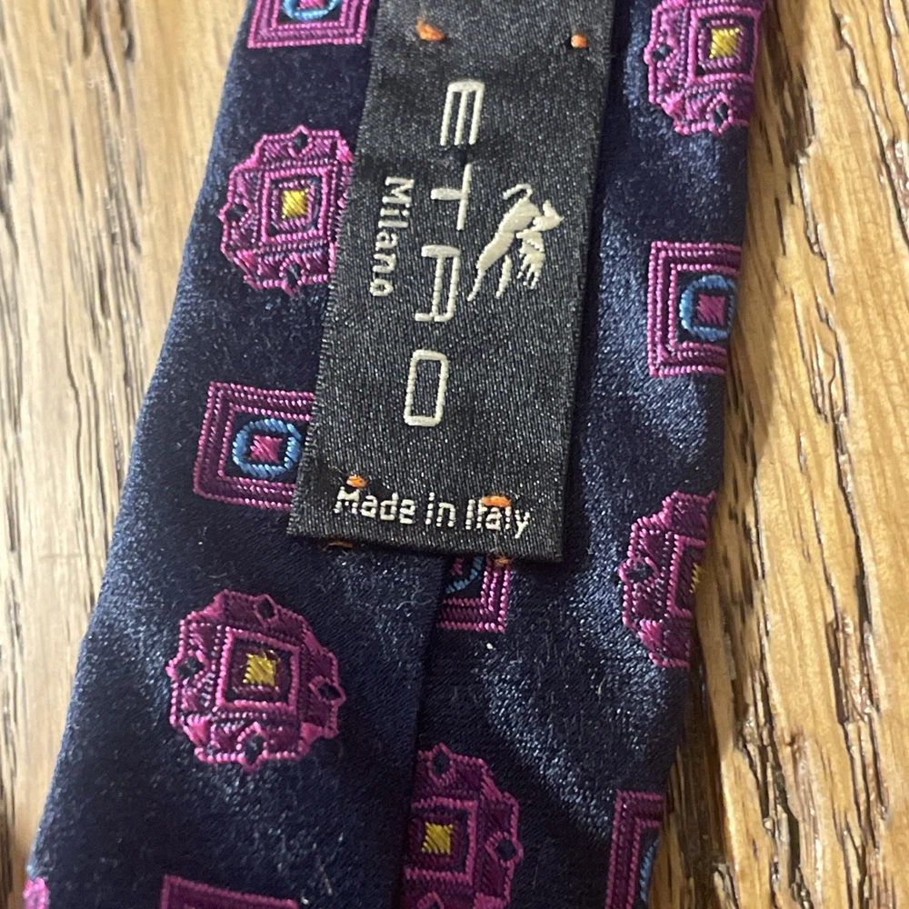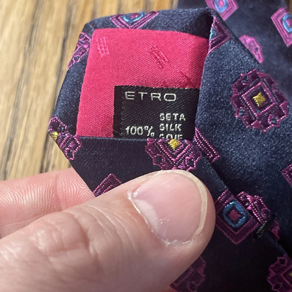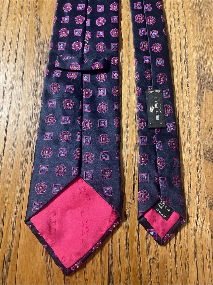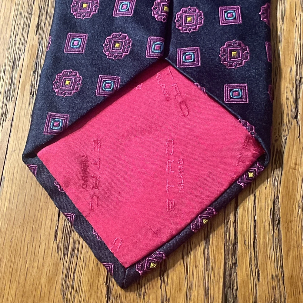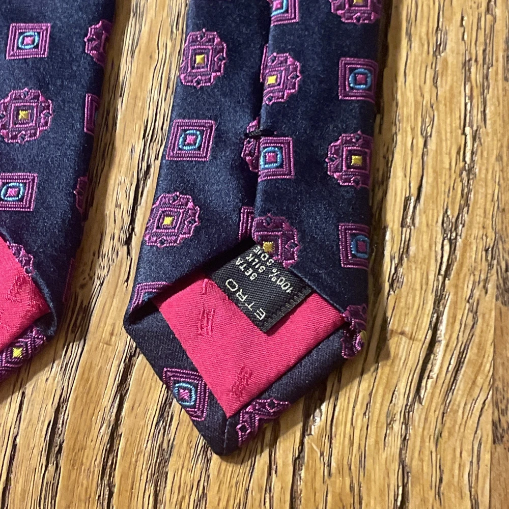 Brand: ETRO Vintage: No Pattern: Geometric Theme: Preppy, Designer, Power Tie Style: Designer Fabric Type: Woven Color: Multicolor Item Width: Classic Country of Origin: Italy Material: 100% Silk Department: Men Type: Tie