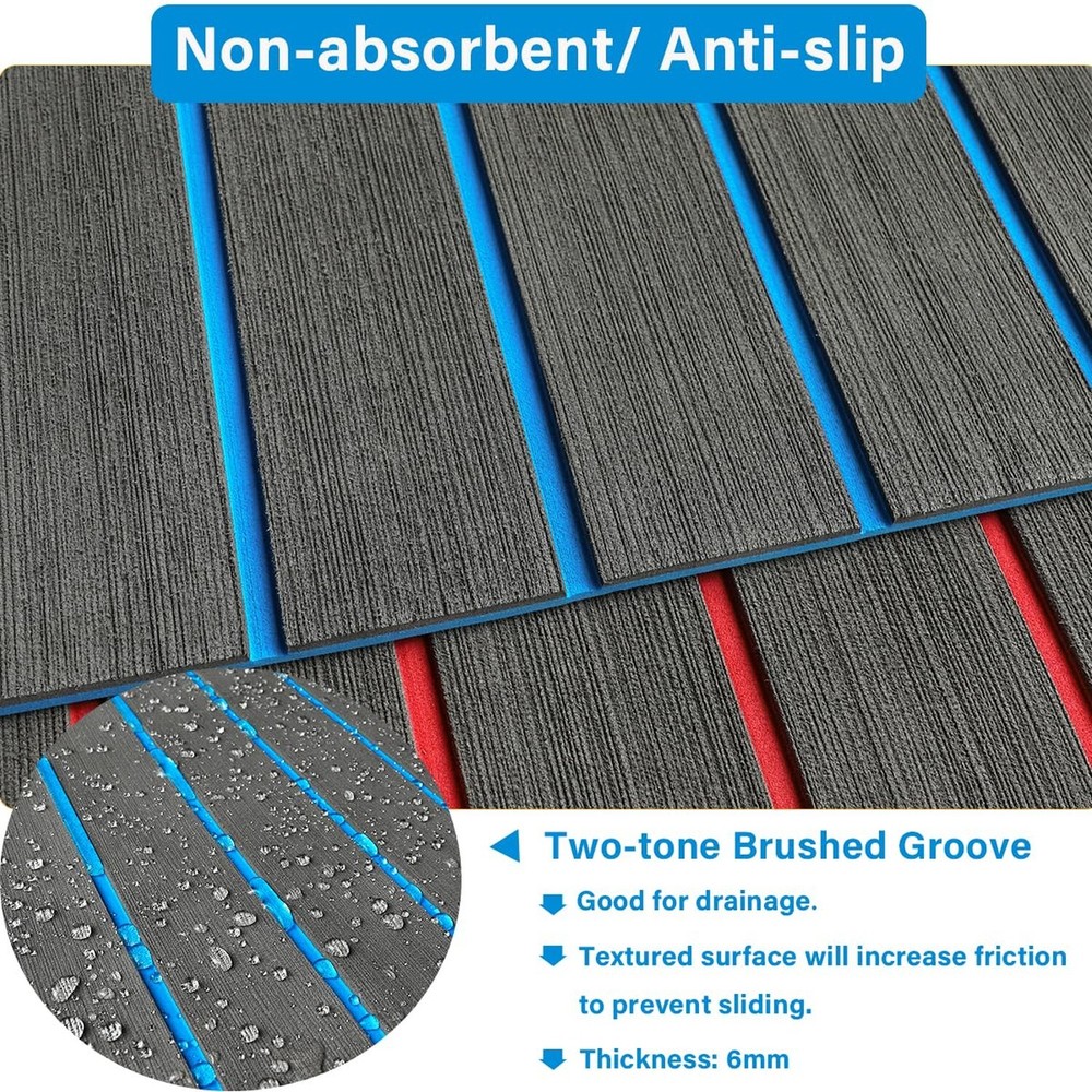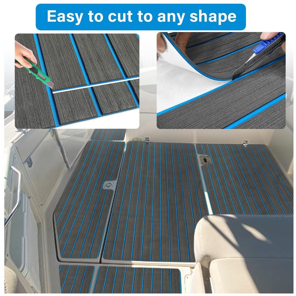 Boat Flooring EVA Foam Boat Decking 94x45/35/16 Faux Teak Marine Carpet Boat Flooring Non-Slip Self-Adhesive Foam Boat Deck Mat Rolls Sheet for MotorBoats Pontoon Yacht Jon Boat Floor Product Details Size: 94.5x21.66"-14.2sqft Color: A-dark Grey With Blue Seam Brand: HZCHIONE MPN: Does not apply UPC: Does not apply EAN: Does not apply Item Package Dimensions L x W x H: ‎22.1 x 5.8 x 5.5 inches Package Weight: ‎1.2 Kilograms Brand Name: ‎HZCHIONE Color: ‎A-dark Grey With Blue Seam Material: ‎Teak Wood, Ethylene Vinyl Acetate Manufacturer: ‎HZCHIONE Style: ‎Faux Teak Wood Pattern Size: ‎94.5x21.66"-14.2sqft Date First Available: July 17, 2023 DOUBLE-LAYER 6MM UPGRADED HIGH-DENSITY EVA--- boat flooring EVA foam mats offer good shock absorption,heat insulation, non-skid, and resistance to tearing and not shrinking in harsh conditions. It is recommended for installation on metal or fiberglass decks,as well as other flat, smooth surfaces. Multi-size and color to Choose. Thickness:6mm. EASY TO CLEAN ---Faux teak boat foam flooring mat with two-tone brushed groove design can increase friction and play a good anti-skid role , as well as good for drainage. EVA foam boat decking rolls provide exceptional comfort and traction even when wet. This EVA foam boat mat can be cleaned with broom, vacuum cleaner. SIMPLE TO CUT AND INSTALL ---Installation instructions are included. Use tools to cut and trim the boat foam sheet into different shapes to fit your boat floor. Our eva boat decking foam has strong glue backing that sticks it hard to the floor,it more cost-effective than 3M glue. TEAK LINES can be easily cut down and simply peel and stick on the boat fit nearly any decking surface where non-skid or surface protection is required. VARIOUS USES---Self adhesive foam boat flooring decking is ideal for fishing boat flooring, RV flooring, kayak flooring decking, yacht boat floors, pontoon boat floors, golf carts, boat trailers, marine carpet deck mats,deck helm pad etc. WORRY-FREE BUYING--- Within 12-month of your purchase, we will replace or refund any quality-related issues. HZCHIONE sells with confidence! If you have any questions with our products, please feel free contact us.