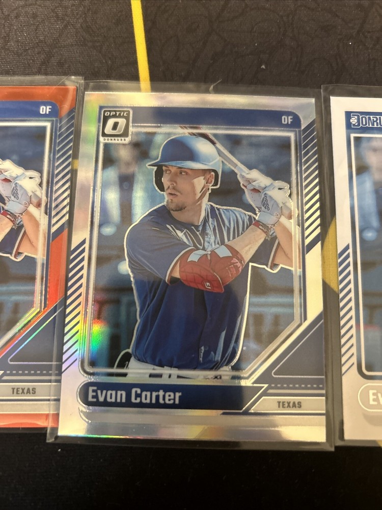 EVAN CARTER 2024 Donruss Optic /99 Rangers Baseball Card with 3 Base Lot of 4