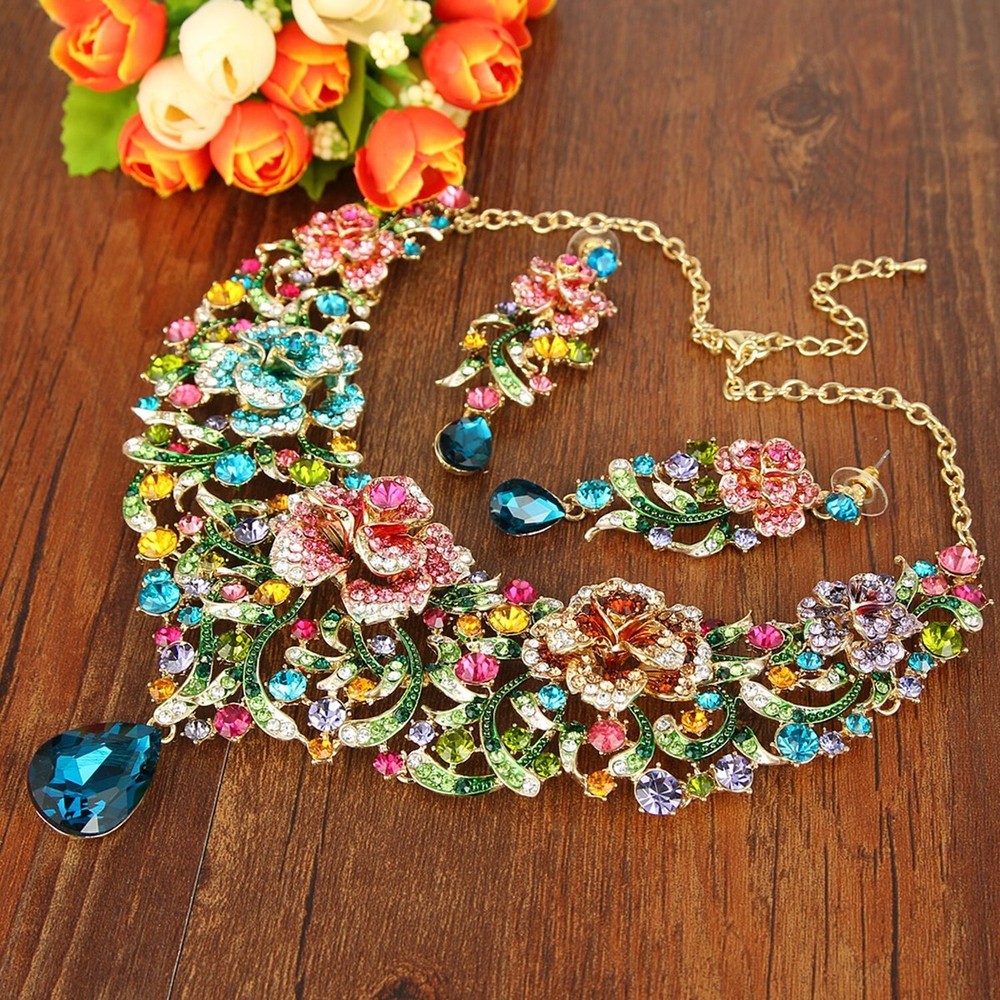 EVER FAITH Women's Rhinestone Crystal Enamel Rose Flower Vine Tear Drop Necklace Earrings Set Product Details Color: Multicolor Gold-Tone Brand: EVER FAITH MPN: N05644-6A UPC: Does not apply EAN: Does not apply Package Dimensions : 4 x 2 x 2 inches; 6.77 ounces Department : womens Date First Available : April 6, 2017 Manufacturer : EVER FAITH Brand, Seller, or Collection Name: EVER FAITH Metal stamp: Not stamped Metal: alloy Material: Crystal Gem Type: Crystal Chain: Rolo Clasp: Lobster Clasp Number of stones: 25 Model number: N05644-6A Classic, glamorous and spectacular design will make you an instant centre of attraction.