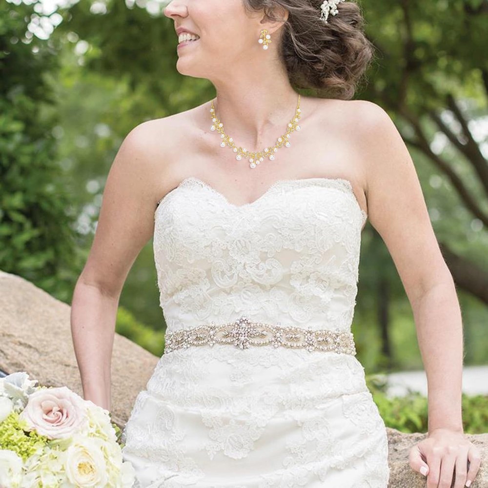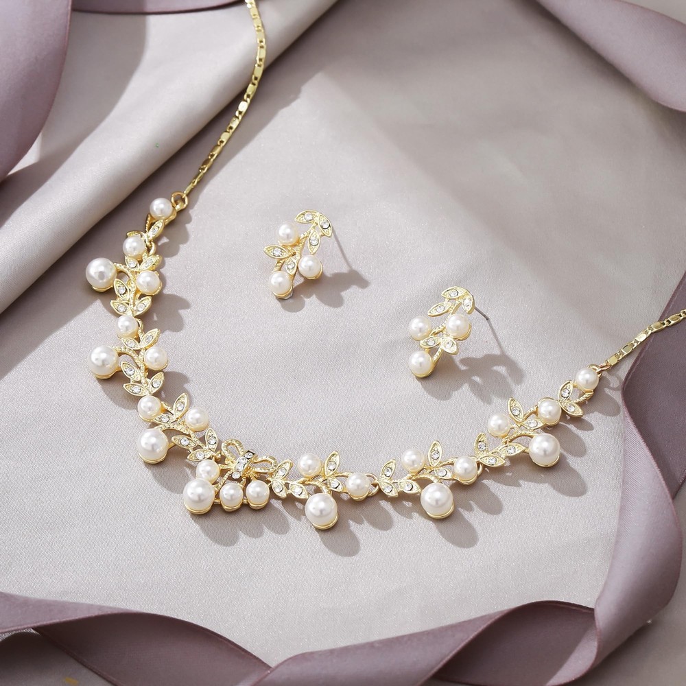 EVER FAITH Women's Weding Jewelry Simulated Pearl Vine Leaf Bowknot Bridal Bride Necklace Earrings Set Product Details Color: A_White Simulated Pearl Gold-Tone Brand: EVER FAITH MPN: N03345-2 UPC: Does not apply EAN: Does not apply Is Discontinued By Manufacturer : No Package Dimensions : 4 x 2 x 2 inches; 1.16 ounces Department : womens Date First Available : May 25, 2018 Manufacturer : EVER FAITH Brand, Seller, or Collection Name: EVER FAITH Metal stamp: Not stamped Metal: alloy Material: Crystal Item Length: 5 inches Height: 0.7 inches Width: 14 inches Length: 11 inches Chain: Curb Clasp: Lobster Clasp Resizable: No Model number: N03345-2