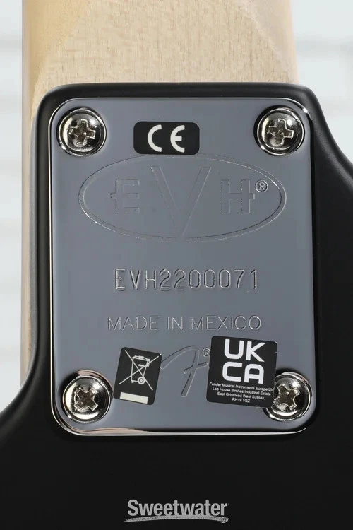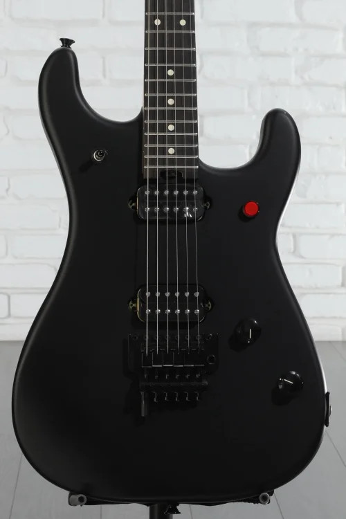 High-performance EVH Electric Guitar The EVH 5150 Standard was built for high performance. But what did you expect? It was designed by Edward Van Halen himself! The 5150 Standard's basswood body yields a growling, mid-forward tone that pairs perfectly with its muscular Wolfgang Alnico II humbuckers. Thanks to a graphite-reinforced, quartersawn maple neck, you'll enjoy rock-solid stability, while a compound-radius ebony fingerboard enables exceptional speed and comfort. Designed to his exact specifications and intentionally positioned against the body, the dive-bomb-only D-Tuna-equipped Floyd Rose lets you mimic Eddie’s signature trem work with ease, along with giving you instant access to Drop D tuning. The EVH 5150 Standard has a kill switch for mind-blowing stutter effects and a low-friction volume pot for super-smooth swells. The eye-catching black hardware and matching hockey stick headstock add the perfect final aesthetic touches to this shining machine.Quartersawn neck for stability and playability The neck is one Sweetwater is an Authorized EVH Dealer Genuine Open Box Item Sweetwater's 2-year warranty* and 55 point inspection EVH 5150 Series Standard Electric Guitar - Stealth Black with Ebony Fingerboard Solidbody Electric Guitar with Basswood Body, Maple Neck, Ebony Fingerboard, 2 Humbucking Pickups, EVH-branded Floyd Rose Tremolo, and D-Tuna - Stealth Black High-performance EVH Electric Guitar The EVH 5150 Standard was built for high performance. But what did you expect? It was designed by Edward Van Halen himself! The 5150 Standard's basswood body yields a growling, mid-forward tone that pairs perfectly with its muscular Wolfgang Alnico II humbuckers. Thanks to a graphite-reinforced, quartersawn maple neck, you'll enjoy rock-solid stability, while a compound-radius ebony fingerboard enables exceptional speed and comfort. Designed to his exact specifications and intentionally positioned against the body, the dive-bomb-only D-Tuna-equipped Floyd Rose lets you mimic Eddie’s signature trem work with ease, along with giving you instant access to Drop D tuning. The EVH 5150 Standard has a kill switch for mind-blowing stutter effects and a low-friction volume pot for super-smooth swells. The eye-catching black hardware and matching hockey stick headstock add the perfect final aesthetic touches to this shining machine. Quartersawn neck for stability and playability The neck is one of the most important aspects of any instrument, which is why the 5150 Standard features a graphite-reinforced, quartersawn maple neck. Besides looking good, the straight grain of quartersawn necks is significantly more stable than plain-sawn necks and less likely to warp, twist, or shrink. Beyond that, this guitar’s compound-radius fretboard goes from 12 inches at the nut to a comfortable and flat 16-inch radius on the upper frets, ensuring easy chording down low and lightning-fast playability up high. The guitarists here at Sweetwater are awed by the incredible, unfettered playability supplied by the 5150 Standard. Wolfgang Alnico II humbuckers yield classic EVH tone The 5150 Standard comes outfitted with EVH Wolfgang Alnico II humbuckers. Superhuman chops aside, Eddie forged his unmistakable sound through incessant tinkering with guitar parts and pickups. To achieve his signature tone, Eddie paid particular attention to different pickup windings. The 5150 Standard’s pickups are the culmination of his experimentation. They nail Eddie's classic tone with muscular lows, singing highs, and snarling mids — all the essential elements of EVH’s elusive brown sound. Floyd Rose tremolo for twisting, bending, and dive-bombs The 5150 Standard boasts an EVH-branded Floyd Rose tremolo. First gaining popularity in the 1980s, the Floyd Rose’s locking design keeps your guitar in tune, even if you like to perform extreme pitch pyrotechnics. You can force the whammy bar all the way down to the guitar's body for psychotic dive-bombing. No matter how much you abuse it, you'll maintain your tuning stability, thanks to the Floyd Rose tremolo's locking design. On top of that, you can easily switch to Drop D tuning, courtesy of the 5150 Standard’s D-Tuna. EVH 5150 Standard Electric Guitar Features: Designed by rock legend Eddie Van Halen Resonant basswood body yields a growling, mid-forward tone EVH Wolfgang Alnico II humbuckers deliver muscular lows, singing highs, and snarling mids Kill switch allows you to create mind-blowing stutter effects Low-friction volume knob enables even-volume tapering for smooth swells Graphite-reinforced, quartersawn maple neck provides rock-solid stability Compound-radius ebony fingerboard allows for exceptional speed and comfort EVH-branded Floyd Rose tremolo allows for twisting, bending, and dive-bombing D-Tuna tremolo device gives you instant Drop D tuning Convenient neck-heel truss rod adjustment thumbwheel Eye-catching black hardware and matching headstock Specification Detail Number of Strings 6 Left-/Right-handed Right-handed Body Type Solidbody Body Shape 5150 Series Standard Body Material Basswood Color Stealth Black Body Finish Satin Polyurethane Neck Material Quartersawn Maple Neck Shape Modified C Neck Joint Bolt-on Radius 12"-16" compound Fingerboard Material Ebony Fingerboard Inlay Cream Dots Number of Frets 22, Jumbo Scale Length 25.5" Nut Width 1.685" Nut Material Floyd Rose R3 Locking Bridge/Tailpiece Top-mount EVH-Branded Floyd Rose Locking Tremolo with D-Tuna Tuners EVH-Branded Gotoh Neck Pickup Direct Mount EVH Wolfgang Humbucker Bridge Pickup Direct Mount EVH Wolfgang Humbucker Controls 1 x master volume, 1 x master tone Switching 3-way toggle pickup switch, kill switch Strings Nickel Plated Steel, .009-.042 Case/Gig Bag Sold Separately RETURN INFORMATION We want you to be completely happy with your purchase from Sweetwater. If you are not satisfied with your product, you may return it for a refund of the purchase price within 30 days. If your purchase was eligib