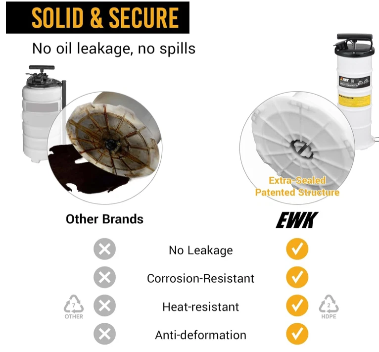 ✨ EWK 6.5L Manual Oil Extractor Pump Automotive Fluid Vacuum Evacuation Tool Transform your vehicle maintenance routine with this innovative fluid extraction solution! πŸ”§ The EWK 6.5L Manual Oil Extractor provides a clean, efficient way to change automotive fluids without crawling underneath your vehicle. This versatile vacuum pump system removes engine oil, transmission fluid, coolant, and more with minimal effort – creating a mess-free maintenance experience that saves time while eliminating the need for specialized equipment or service appointments. Convenient Operation: πŸ›’οΈ Changes oil without crawling under the vehicle πŸ’¨ Creates strong vacuum with just 10 quick pumps πŸ§ͺ 6.5-liter capacity handles multiple fluid changes πŸ”’ Sealing cap prevents spills during transport 🧰 No special tools or equipment required Versatile Applications: πŸš— Suitable for cars, motorcycles, and boats 🌿 Works with lawnmowers and power equipment πŸ› οΈ Extracts engine oil, transmission fluid, and coolant 🧠 Adaptable to various dipstick tube diameters 🧡 Extra-long tubes reach the bottom of fluid reservoirs Pro Tip: πŸ’‘ For maximum extraction efficiency, warm up the engine briefly before using this tool. Warm oil flows more easily, allowing the extractor to remove more fluid in less time. After the initial 10 pumps, monitor the vacuum pressure and add additional pumps after 30 seconds if needed to maintain optimal suction until the reservoir is completely empty. Explore our complete selection of automotive maintenance tools designed to make vehicle care easier! Our customer service team is always ready to help you find the perfect solutions for your specific maintenance needs.