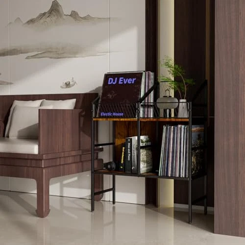 Description Vinyl Record Holder Large capacity: This record storage cabinet can accommodate 200 records, with two layers of space for storage. The records in the upper layer will be displayed on the front for easy viewing and retrieval Size 26.34 * 10.39 * 34.53 inch The record storage stand is not only functional, but also stylish, making it the ideal addition to any living room or bedroom. The compact size allows for easy storage and transport, making it a great choice for those who love to take their collection on the go. High quality materials: Made of high-quality MDF wood boards and steel skeleton, sturdy and durable, environmentally friendly and waterproof. The four wooden legs are designed with an inclined angle and can withstand a weight of 200lb. Retro design can adapt to various home styles, while diamond mesh design maintains visualization. Retro style design: The black vinyl record holder is made of brown wooden boards and a matte black steel frame, with sharp edges giving a strong nostalgic atmosphere. Each piece is a unique artwork. Lifetime Warranty: Our products offer a lifetime warranty service. If you encounter any product problems, please contact our customer service. We will reply within 24 hours to help you solve the product problem.