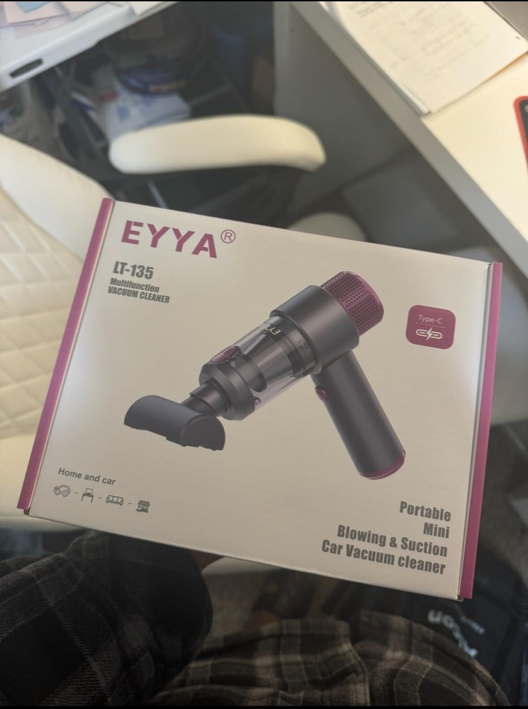 EYYA Handheld Car Vacuum Cleaner Cordless, 15000PA High Power Car Vacuum Cleaner & Air Duster, 4-in-1 Portable Mini Car Vacuum Cleaner with LED Light, Hand Held Vacuum Cleaner for Car Home Office About this item đ ă4-IN-1 Car Vacuum CleanerăHandheld Vacuum cleaner used with 7 accessories can be used to get 4 modes of suction, blowing, inflation and vacuum compression to meet your different use scenarios. Floor brush and nozzle brush can easily suck up all kinds of debris. Blowing nozzle can be used to blow away dust from keyboards and narrow crevices. Two sizes of universal nozzles can quickly inflate or expel air from objects such as swimming rings, mattresses, etc đăPowerful 15000PA SuctionăPowerful motor of the hand held vacuum cleaner has 86,000RPM and provides up to 15000PA of suction power. Whether it's a sofa or carpet in your home, or the interior of your car, it's easy to clean. The rapid heat dissipation function can expel heat in a short period, making the motor more durable and long-lasting. The operating sound is as low as 40dB, so you can clean quietly without disturbing others đď¸ăDual Filtration SystemăCar vacuum portable cordless cleaner comes with an upgraded dual filtration system that prevents suction loss and clogging. It has two reusable filters, the steel filter can effectively filter large particles of debris, and the washable HEPA filter can effectively filter tiny particles and dust to prevent damage to the motor. The one- click dusting design makes cleaning easier. With just one click, the dust cup can be easily emptied âĄăType-C Fast & Safe ChargingăPortable car vacuum cleaner has a built-in 4000mAh battery that can be recharged and used repeatedly, which is more environmentally and energy efficient. Quickly charge mini car vacuum cleaner using the USB port of your computer, mobile power, car charger, etc. You can also use the 5V/2A adapter to fully charge it in 2.5 hours (red light for charging, green light for fully charged) with 25min of run time đĄăPortable & LED LightăThis handheld vacuum cordless cleaner is only 0.88LB in weight, easily fits into an organizer or storage cabinet without taking up too much space. With the cordless design, you can clean high or inaccessible areas without the risk of electrocution or slipping. Equipped with an LED light, the vacuum cleaner can illuminate hard-to-reach nooks and crannies, and can also be used as an emergency torch