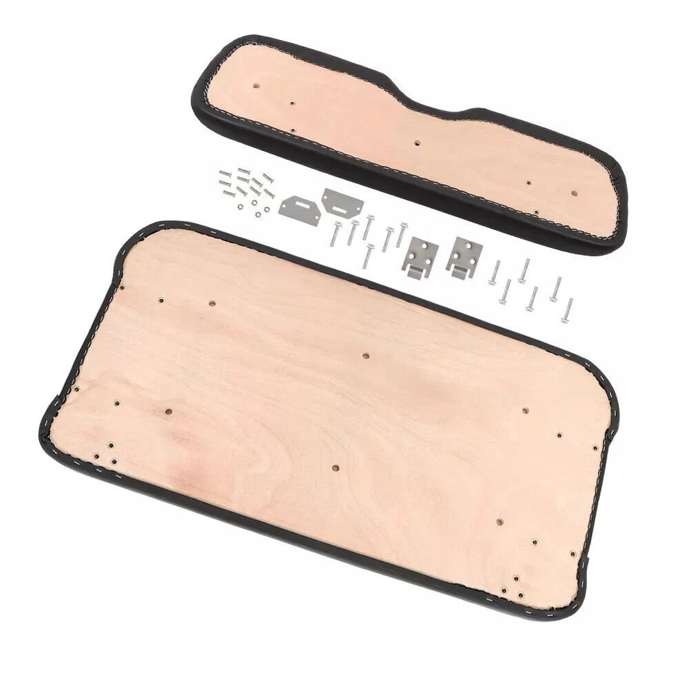 1x Front Seat Lean Back Cushion (One Piece) 1x Front Seat Bottom Cushion Including Seat Cover, Molded PU cushion, Wood Base Including mounting hardware and seat hinges No Lean Back Plastic Cover, no hip restraints Predrilled holes matching seats. The seat cover is made from PU vinyl, soft and comfortable. This product only includes black or beige sets. Customers can choose their favorite color to place an order On Feb 25, 2025 at 21:46:51 PST, seller added the following information: