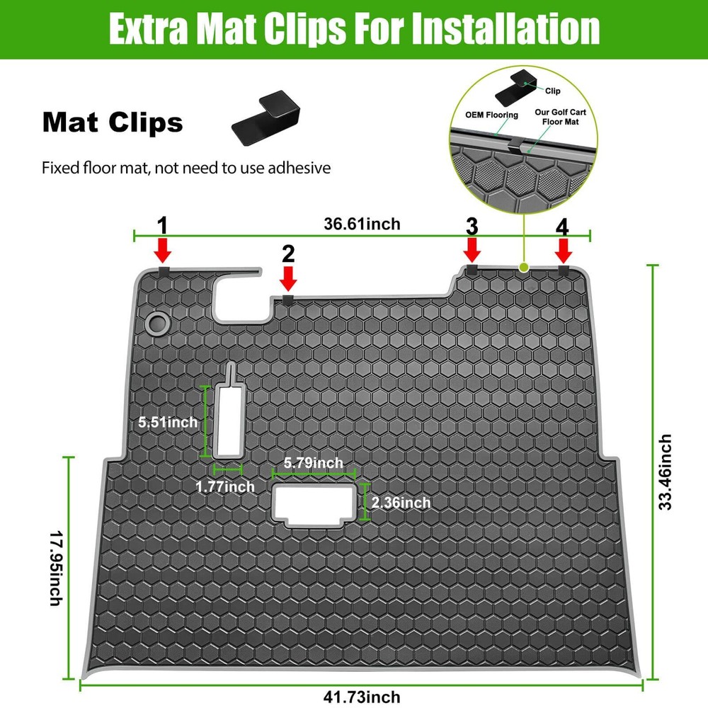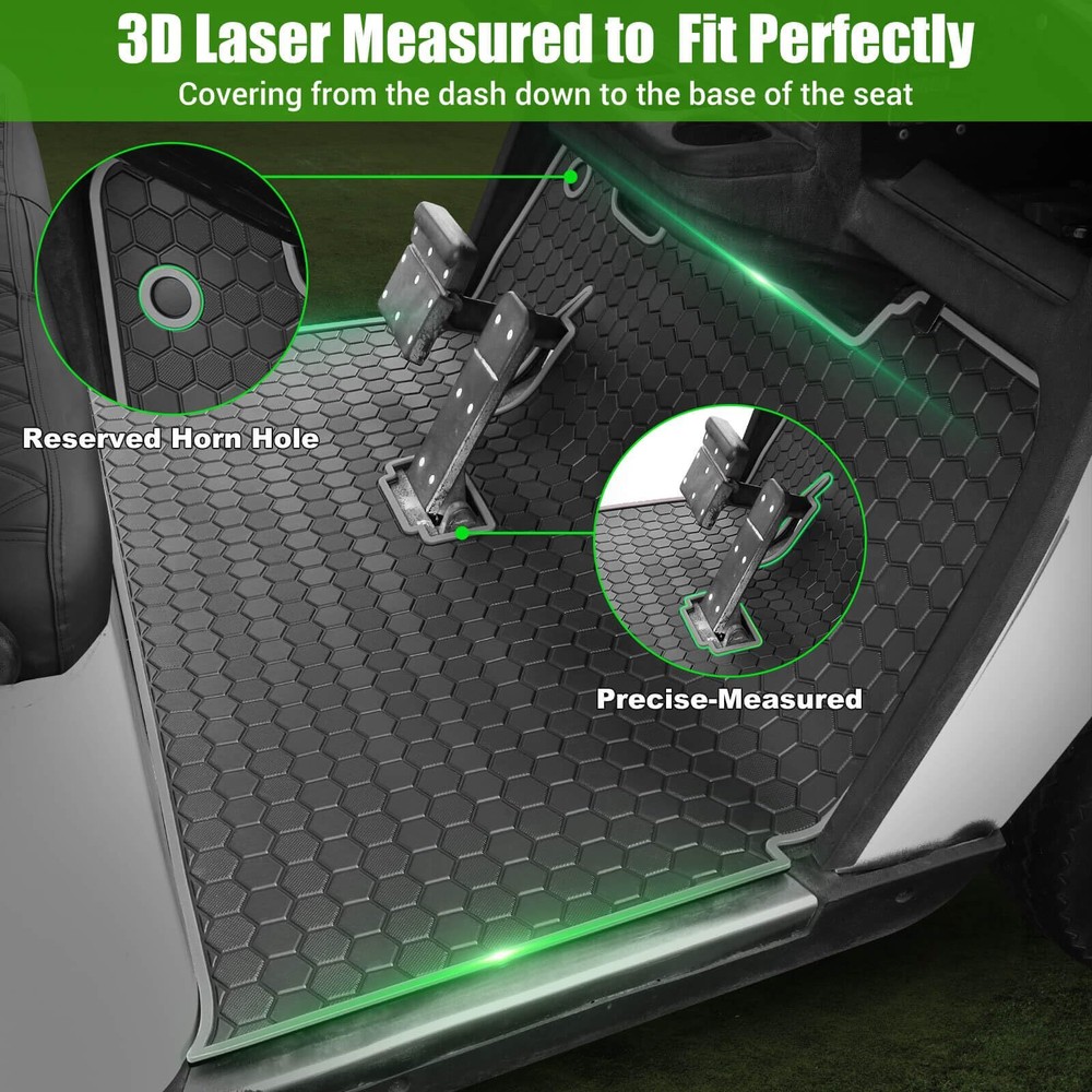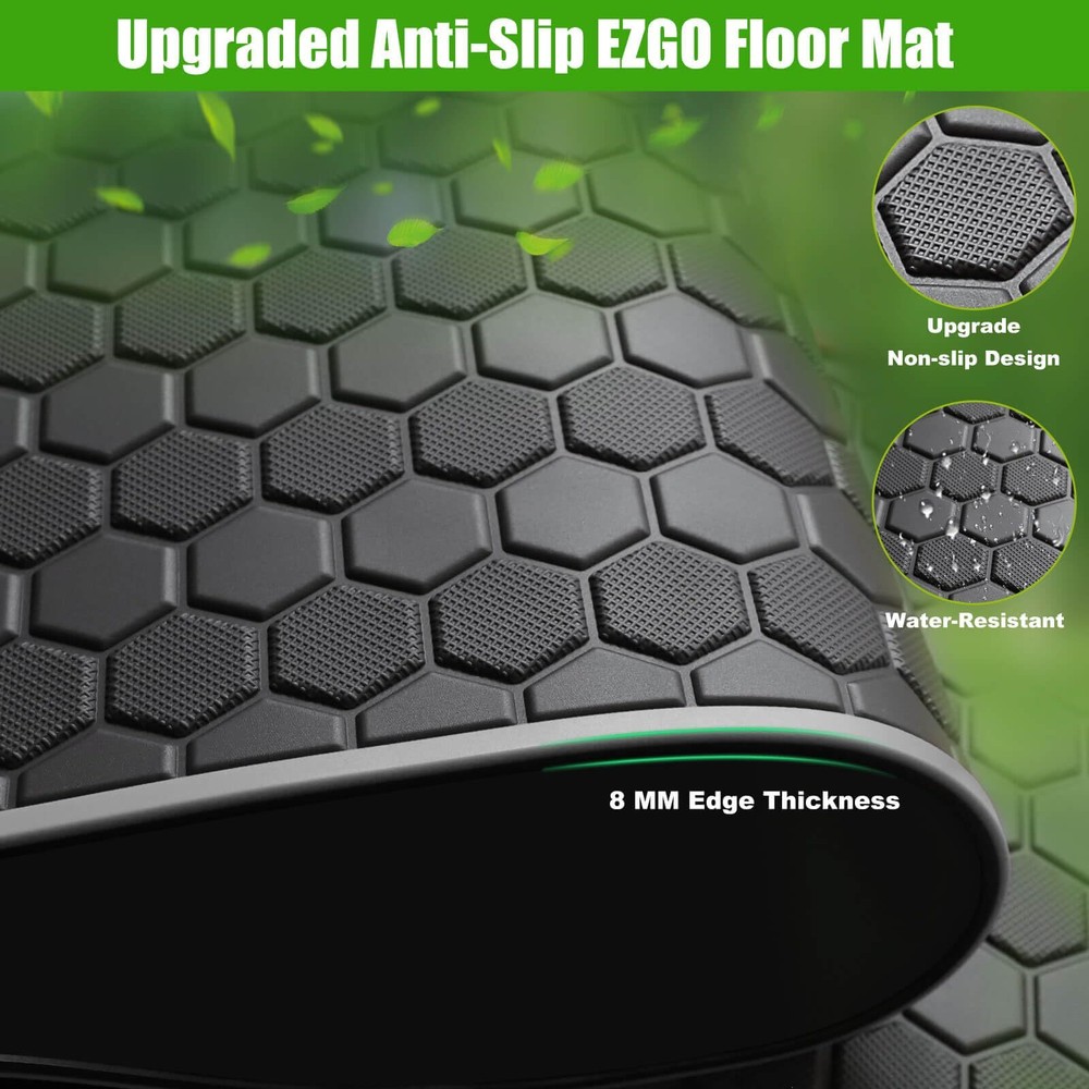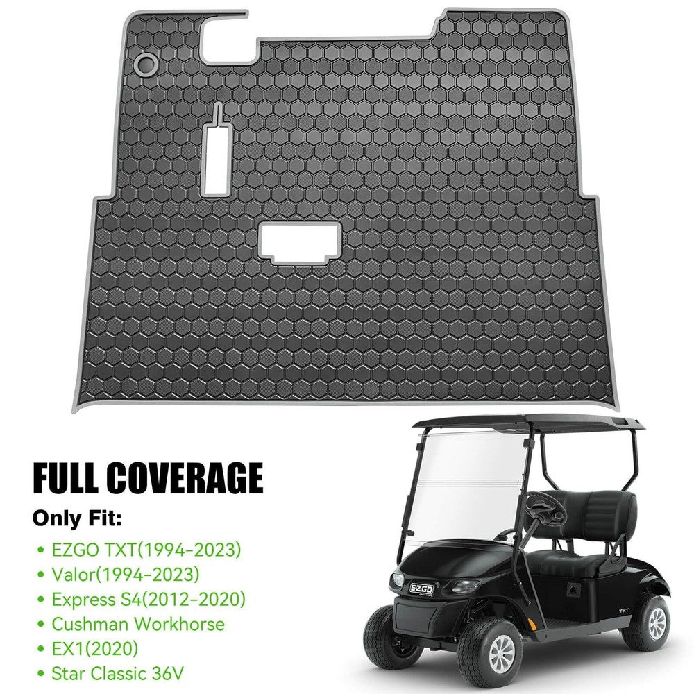 EZGO TXT Golf Cart Full Coverage Floor Liner Mat, fits EZGO TXT (1994+), Valor(1994+), Express S4(2012-2020), Cushman Workhorse, EX1(2020), Thick Anti-Slip Rubber, Grey Trim Applicable Models: Golf cart floor mat only fits EZGO TXT (1994-2023), Valor(1994-2023), Express S4(2012-2020), Cushman Workhorse, EX1(2020), Star Classic 36V. Remember to Double Check Your Cart Models Before Purchase Accurate size: Laser-measured, EZGO floor mat fits around pedals and seat base, does not interfere with brake pedal and accelerator, just use four clips that attach to the factory installed mat, not need to use adhesive to stay in place, easy to install and remove Performance: Designed with hexagonal pattern and grid square texture, EZGO TXT floor mat provides excellent dirt and slip resistance. Excellent durability and waterproofing, withstands normal wear and tear, and provides reliable protection in various weather conditions Easy to Install: EZGO golf cart floor mat can protect the underside of the vehicle from damage. Effectively prevent against dirt, wearing, scratches, , extend the life of the floor Easy to Clean: Soft Rubber Easy to Remove and Clean, You only need to rinse with water to clean the mat surface and wipe it with a rag to make it brand new Golf Cart Mat Full Coverage Floor Liner for EZGO TXT (1994-up), Express S4 (2012-2020), Workhorse/Valor Golf Cart Models Applicable Models:EZGO TXT floor mat only fits EZGO TXT (1994 1995 1996 1997 1998 1999 2000 2001 2002 2003 2004 2005 2006 2007 2008 2009 2010 2011 2012 2013 2014 2015 2016 2017 2018 2019 2020 2021 2022 2023), Valor(1994-2023), Express S4(2012-2020), Cushman Workhorse, EX1(2020), Star Classic 36V. Material: EZGO txt mat made of high-density natural rubber meterial, durable and sturdy enough, withstand high temperature and extreme cold in all seasons, no-deformation, no-cracking. Full-Coverage: Full-Coverage floor mat provides all-round protection for the original floor, preventing rain and mud from seeping into the floor and damaging the vehicle, Designed in one piece and with four clips for fixing, the foot mat could be easily installed or removed. Shipping We offer FREE shipping on all orders! We ship within Three business days of payment, usually sooner. We use a selection of shipping services such as UPS, FedEx, USPS etc. We only ship to the lower 48 states, no APO/FPO addresses or PO Boxes allowed. Local pickups and combined shipping options are not provided at this time. Return You can return a product for up to 30 days from the date you purchased it. Any product you return must be in the same condition you received it and in the original packaging. Please keep the receipt. Payment We accept payment by any of the following methods: PayPal Please pay as soon as possible after winning an auction, as that will allow us to post your item to you sooner! Feedback Customer satisfaction is very important to us. If you have any problem with your order, please contact us and we will do our best to make you satisfied. Contact Us If you have any queries, please contact us via ebay. We usually respond within 24 hours on weekdays. Please visit our eBay store to check out other items for sale! Thank you for shopping at our store.
