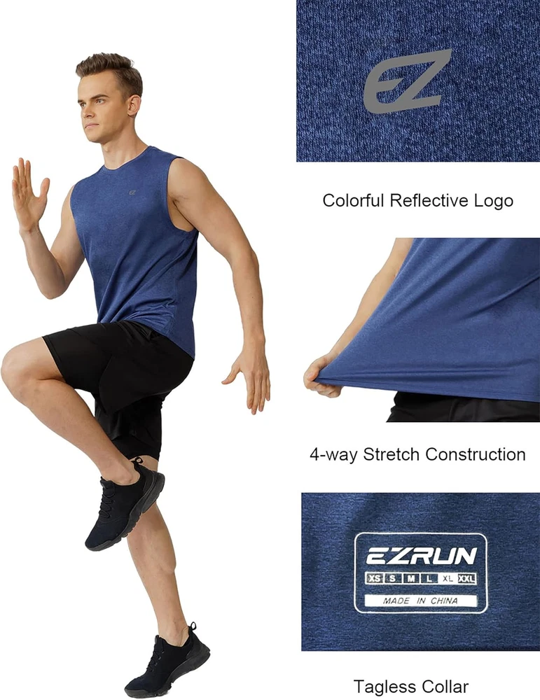 EZRUN Men'S Workout Sleeveless Shirts Quick Dry Muscle Swim Shirt Gym Fitness Ru