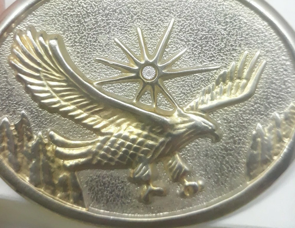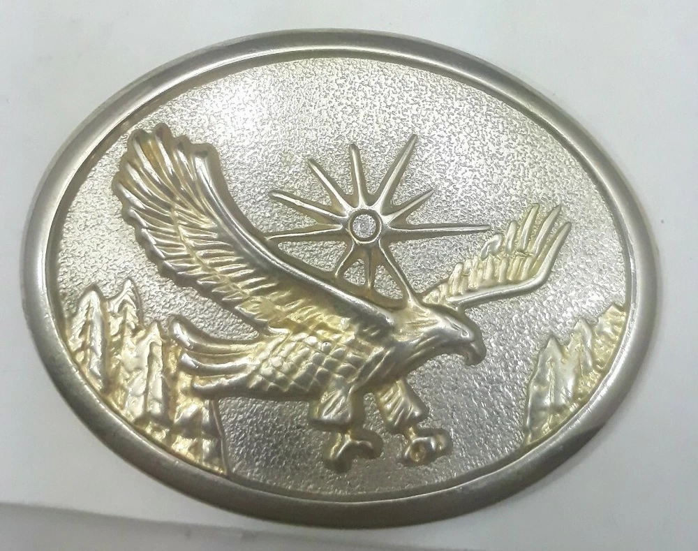 Eagle Belt Buckle 70s Gold Western Bird Wings Bird Cowboy Hawk Oval 3" length 2 1/2" tall. Condition is Pre-owned. Shipped with USPS First Class Package.