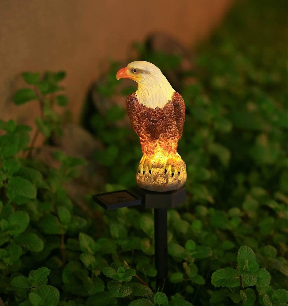 Very beautiful hand-carved eagle sculpture,eagle statue made of high quality resin, lighting looks bright at night and also good for decoration during the day; decorate your patio, lawn & garden as well as garden ornaments gift Eagle decor solar light decoration: solar panel collects sunlight during the day to charge the battery (included). Automatically turns on at dusk and illuminates for up to 6 hours at night Solar eagle light decoration size: eagle height 6 inches; eagle and solar post total height 17.5 inches Weather resistance:The solar light is made of high quality thick plastic. IP44 waterproof solar panel is suitable for outdoor use, no need to worry about rain, snow, frost or rain traps. Available all year round Make sure the button is in the "ON" position before changing the button in sunlight. If the button is in the "ON" position and the solar panel is left in the dark, the light will come on. If you have any other questions, please feel free to us.