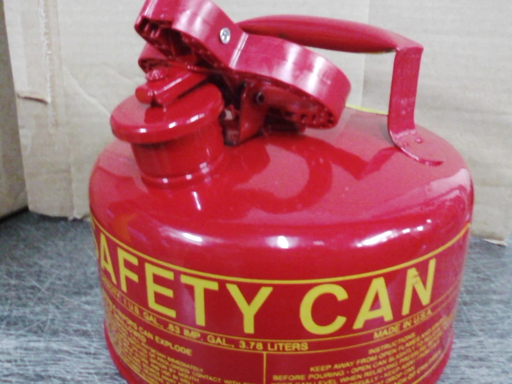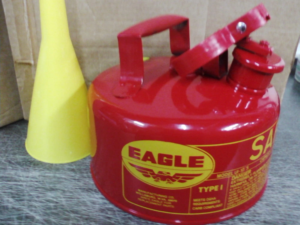 EAGLE SAFETY GAS CAN 1 GALLON Up for bids is one Eagle Safety Gas Can 1 Gallon Deep drawn 2 piece no weld construction 24 Gauge Galvanized Steel Spring Closing Lid with neoprene gasket Includes Funnel Meets OSHA & NFPA Code 30 requirements Type I UL, ULC Listed, FM Approved Boxed THANKS FOR LOOKING!!!!!