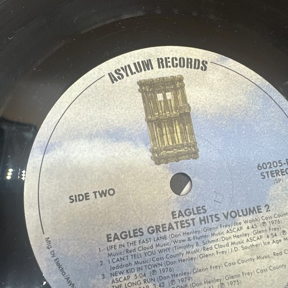 Artist: Eagles Format: Record Release Title: Eagles Greatest Hits Volume 2 Country/Region of Manufacture: United States Record Size: 12" Case Type: Cardboard Sleeve Release Year: 1982 Language: English Color: Black Speed: 33 RPM Genre: Country, Pop, Rock Type: LP Material: Vinyl Edition: Greatest Hits, Reissue Style: 1970s, Classic Rock, Country Rock Record Label: Asylum Records Features: FIRST PRESSING