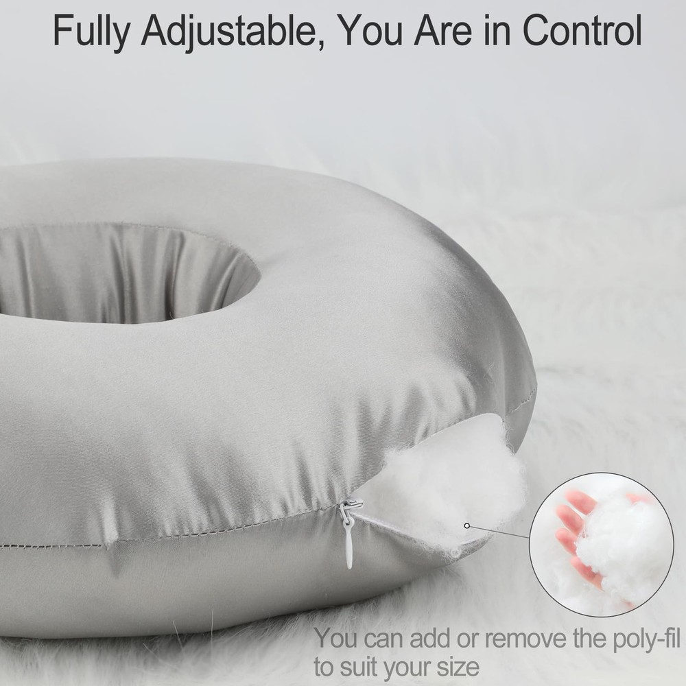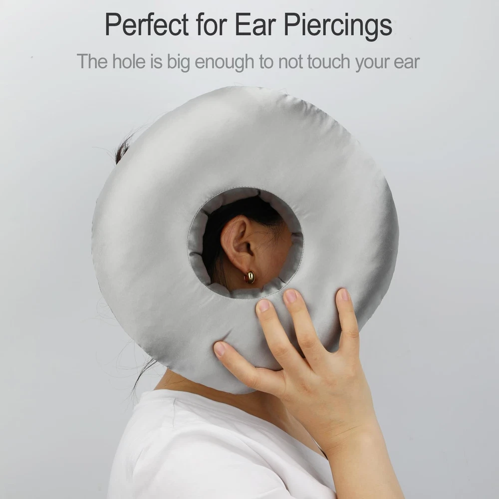 Ear Piercing Pillows with Hole for Side Sleepers Donut Pillow Ear Pain Relief Features: LIFESAVER FOR EAR PIERCINGS: This silky ear piercing pillow provides exceptional comfort and support, allowing you to rest peacefully without putting pressure on your sensitive ear. Just right for those suffering with ear pain, ear inflammation, a new piercing, CNH, ear pressure sore relief, tinnitus, otoplasty, tragus, side sleeper or someone who prefers to sleep with earplugs on. This is a game changer for sure those who have multiple piercing and sleep on sides. SOFT SILKY QUALITY FABRIC: The smooth luxurious satin ear pillow with an hole allows your skin and hair to glide gently and freely over the pillow and is anti-static. The cooling satin piercing pillow reduces friction between your hair skin and the silky pillowcase, helping to minimize facial wrinkles, prevent dry knotted hair and reduce hair loss. Fewer creams are absorbed than cotton pillowcases, so they help keep hair and skin smooth, moisturized and shiny. PROMOTES A GOOD NIGHTS SLEEP: With this ear pain pillow, you can sleep deeply all night long and if you're used to sleeping on your side or have ear pain, It keep your ears from squeezing! The mighty supportive pillow with an ear hole takes all the pressure off aching ears and promotes a good night's sleep. The magical opening holes are large enough that they won't touch your aching ears wherever they are. You can sleep soundly all night long without any irritation to your ears! ADJUSTABLE: Say goodbye to earache, start with an ear pillow. A donut shape supports your head and an opening in the middle lets your healing ear rest without pain or irritation. It has a zipper on the side which can be opened to add or subtract high quality microfiber polyester filler adjusted to suit your desired thickness. In order to find your personal comfort zone, you can use this pillow on top of ordinary pillows for added elevation and support. PERFECT GIFT FOR FAST HEALING: This compact ear piercing pillow is easy to carry. You can take your it anywhere with you without worrying about the piercing stings. When you're traveling, working in the studio or on the train, you can finally sleep comfortably through the night! Whether you're looking for a little relief for yourself or a loved one, our silky ear piercing pillows with pillowcase are sure to do what you want. Description: Pierced Ears Healing Too Slowly? Injured Ear? Ear Sensitivity? Ear Pain? Ear Inflammation? Tinnitus? Ear Pressure Sores? The ear hole piercing pillows is a true saviour for you when it comes to dealing with ear pain caused by side sleeping or CNH (Chondrodermatitis Nodularis Helicis). Say goodbye to restless nights and hello to comfortable sleep with these specialized pillows designed to provide targeted relief and promote healing. The cooling satin pillowcase features a silky feel and a breathable touch, it's cooler to the touch and moisture-wicking, helping eliminate night sweats and overheating, ensuring a deep sleep. Soft silky piercing pillows are the perfect addition to your beauty routine- goodbye split ends, sleep wrinkles and bed hairs, recreate comfortable and beautiful skin! The ear hole pillow alleviate any pressure on the ears, ensuring that sensitive areas such as newly pierced ears or irritated ear cartilage, are properly cushioned and protected. The magical opening hole is large enough that it won't touch your ear wherever it hurts. The soft and supportive material conforms to the shape of the head, providing gentle support while minimizing friction. Our ear piercing pillows also help to prevent the formation of pressure sores, allowing existing sores to heal faster. You can sleep soundly all night long without any irritation to your ears! Our ear pillows are filled with soft polyester. You can remove or add fillings as required via the invisible zip for extra comfort. Not only does this pillow with ear piercing make a great gift for a friend or family member who has a sore or irritated ear, it is also great for side sleepers who need to use earplugs or listen to music at night in order to fall asleep. Description: Approx. Ear donut Pillow Size is 9", The Hole size is 3.5" Material: silky satin pillowcase, polyester filling 🌻 If you need more quantity than shown available - just send me a message and I'll increase the purchased limit for you 🌻 SHIPPING We are always working hard to ensure your package arrives as soon as possible. Please understand that some factors like weather, high postal traffic, and the performance of shipping companies are outside of our control. We offer free shipping to the lower 48 states. We do not accept P.O. Boxes. Please provide a physical address. Thank you 🌻 TRANSLATE with x English Arabic Hebrew Polish Bulgarian Hindi Portuguese Catalan Hmong Daw Romanian Chinese Simplified Hungarian Russian Chinese Traditional Indonesian Slovak Czech Italian Slovenian Danish Japanese Spanish Dutch Klingon Swedish English Korean Thai Estonian Latvian Turkish Finnish Lithuanian Ukrainian French Malay Urdu German Maltese Vietnamese Greek Norwegian Welsh Haitian Creole Persian