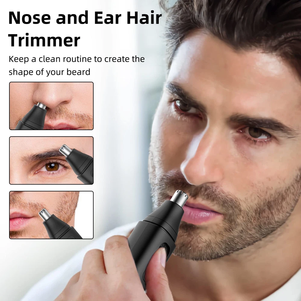 Electric Nose/Ear Hair Trimmer:Our nose hair trimmer with dual edge blades, dual-edge spinning blades system with a protective cover,removes excess hair from nose and ears, giving you a neat and stylish beard look. Safety to Use and Low Noise Operation:The cutting head is stainless steel and hypoallergenic, so you don't have to worry about sensitive skin and it's safe to use. Specially designed noise control so you can use it smoothly. Extremely Light Design and Powerful: It weighs only 53 grams and can be used for 50 minutes on a full charge, making it suitable for travel and business trips. 10000 PRM's powerful motor avoids snagging hairs. Easy to clean:The ear and nose trimmer has a washable head to ensure that the trimmer is clean after each use (the body is not waterproof). Hassle-free after-sales service. We offer a 30-day full money back guarantee and a 12-month warranty. If you have any questions about the product, please feel free to contact us and we will give you an answer within 24 hours.