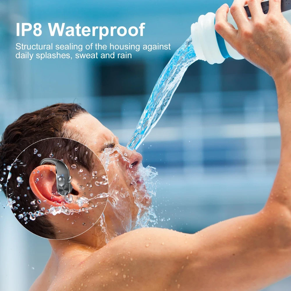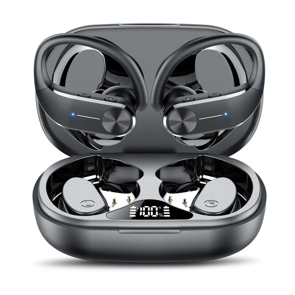 68 HOURS OF LISTENING TIME AND 800 mAH CHARGING CASE: With up to 8 hours of listening time per headphone and an 800 mAH charging case for up to 58 hours of music listening, the Q28S wireless headphones feature a dual-LED display that shows battery status in real time, making it easy to monitor the remaining charge;It supports Type-C fast charging DESIGNED FOR SPORTS: Flexible, durable silicone earhooks and an ergonomic design fit perfectly in your ears, allowing you to focus on your sporting activities without worrying about dropping your earbuds. Available in three different sizes, the earbuds are fatigue/pain free for long periods of use.IP8 waterproof to withstand common splashes and rain HIGH SOUND QUALITY AND CLEAR CALLS: The Bluetooth earbuds are equipped with 13.44 mm dual-layer drivers that deliver powerful bass (up to 16 Hz), clear mid-range and bright highs (up to 20 kHz). The built-in microphone features ENC noise cancellation to isolate your voice from ambient noise, ensuring high-quality calls. -TOUCH CONTROLS AND QUICK PAIRING: Easy-to-use -touch controls let you manage your music, adjust volume and take calls with ease. When you remove the wireless headset from the charging case, the headset automatically connects to the previously paired device. with most Bluetooth devices including smartphones, TVs, computers, laptops and smartwatches. MULTIPLE USAGE MODES: Wireless headphones are available in binaural mode, where you can enjoy surround sound with powerful bass, or in mono mode, where you can listen to your music using only the left and right earpieces. Devices can be paired up to 30 metres away from each other.