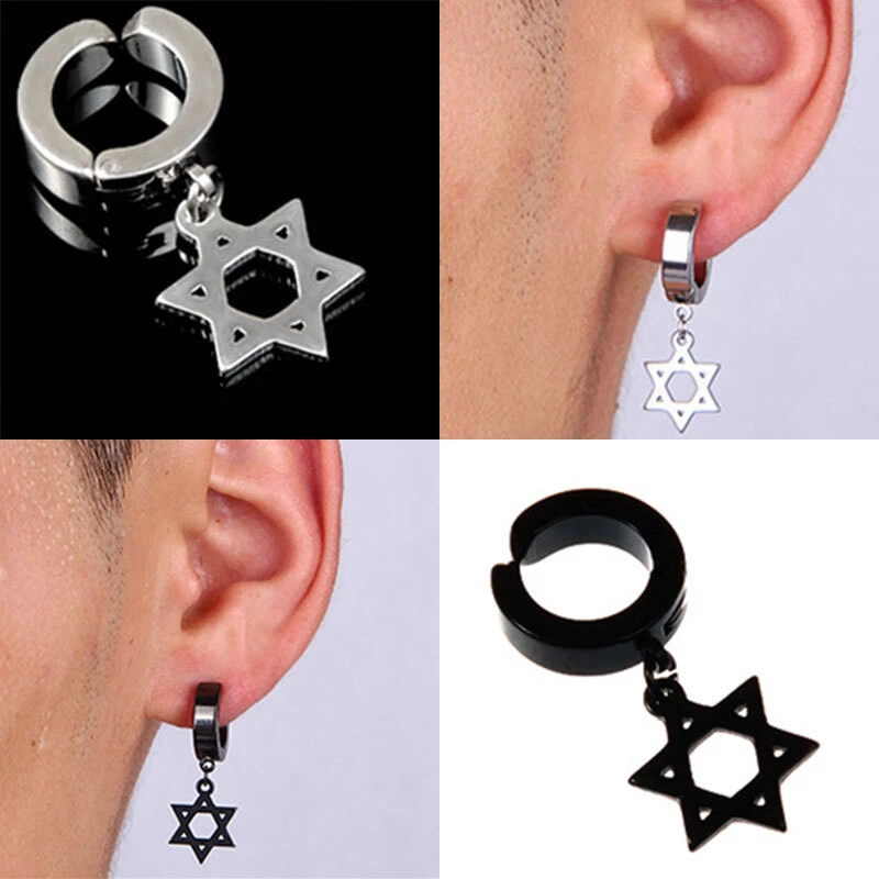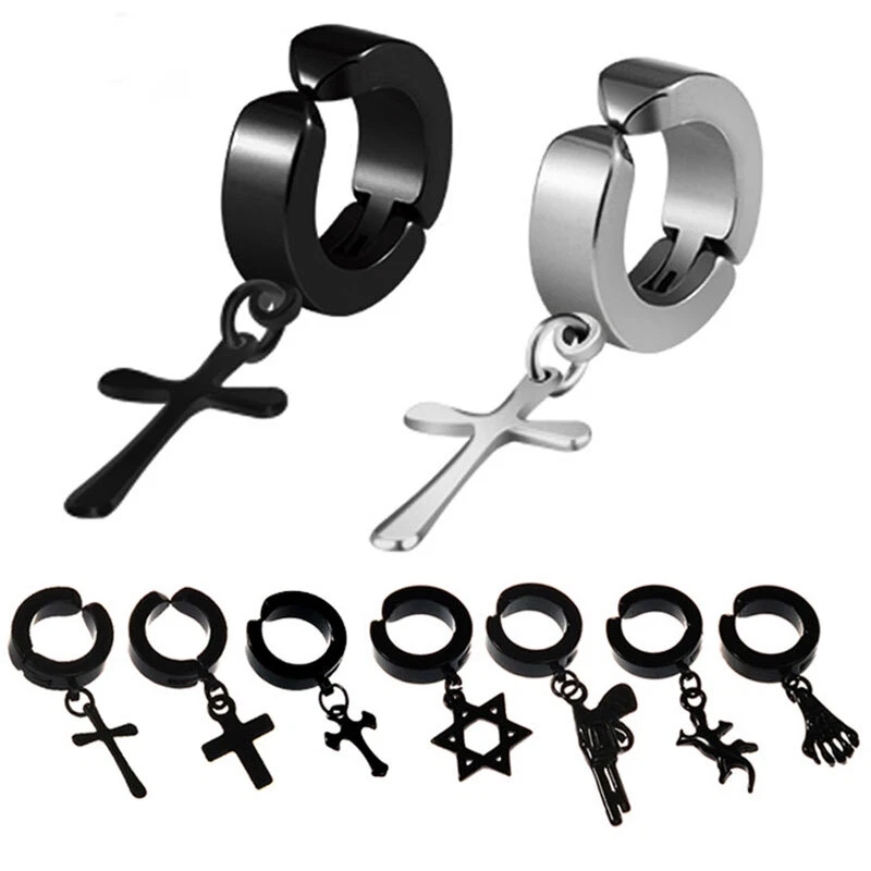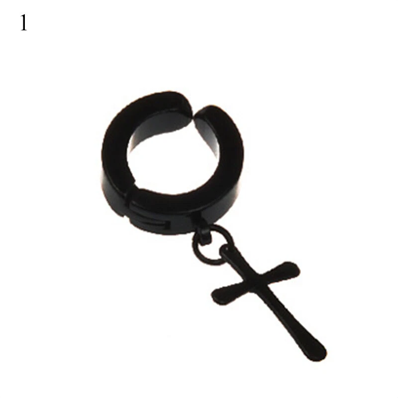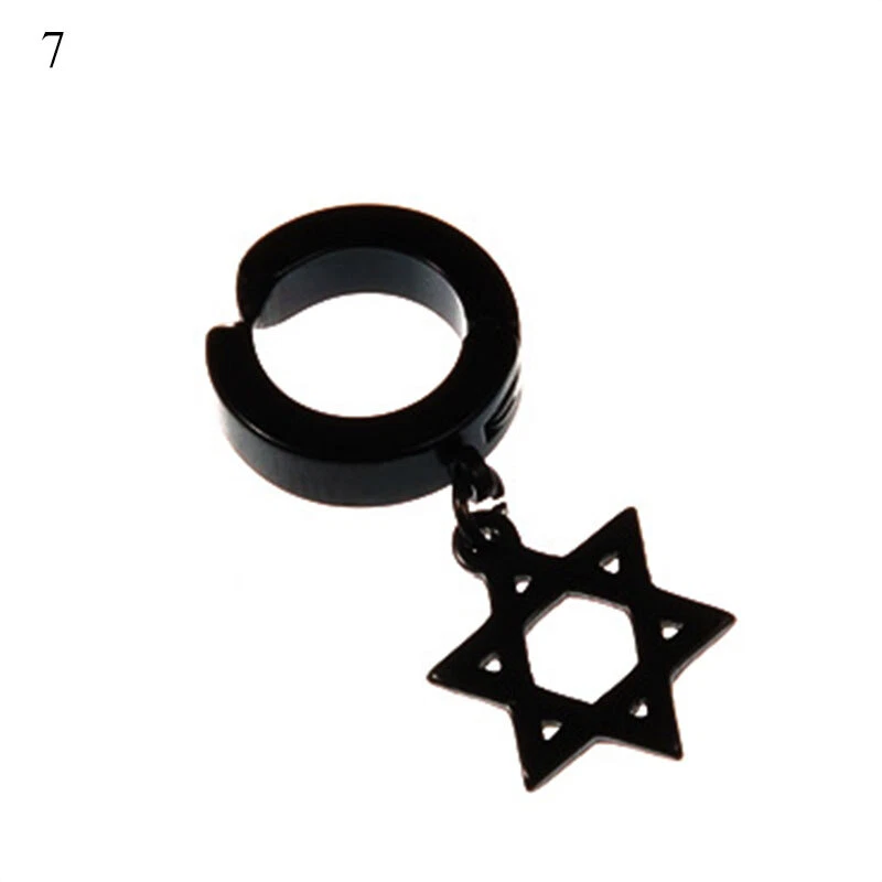 1PC Hiphop Punk Stainless Steel Star Cross Pendant Ear Clip No Piercing Earring Feature: 100% brand new and high quality. Description: Item Type:Earring Style:Fashion Material:Stainless Steel Color:Silver,Black Size:Inner Diameter 9mm/0.35inch Outer Diameter 13mm/0.51inch Packing:1PC Earring Note: Please allow1-2cm measuring deviation due to manual measurement. Due to the difference between different monitors, the picture may not reflect the actual color of the item. Thank you!