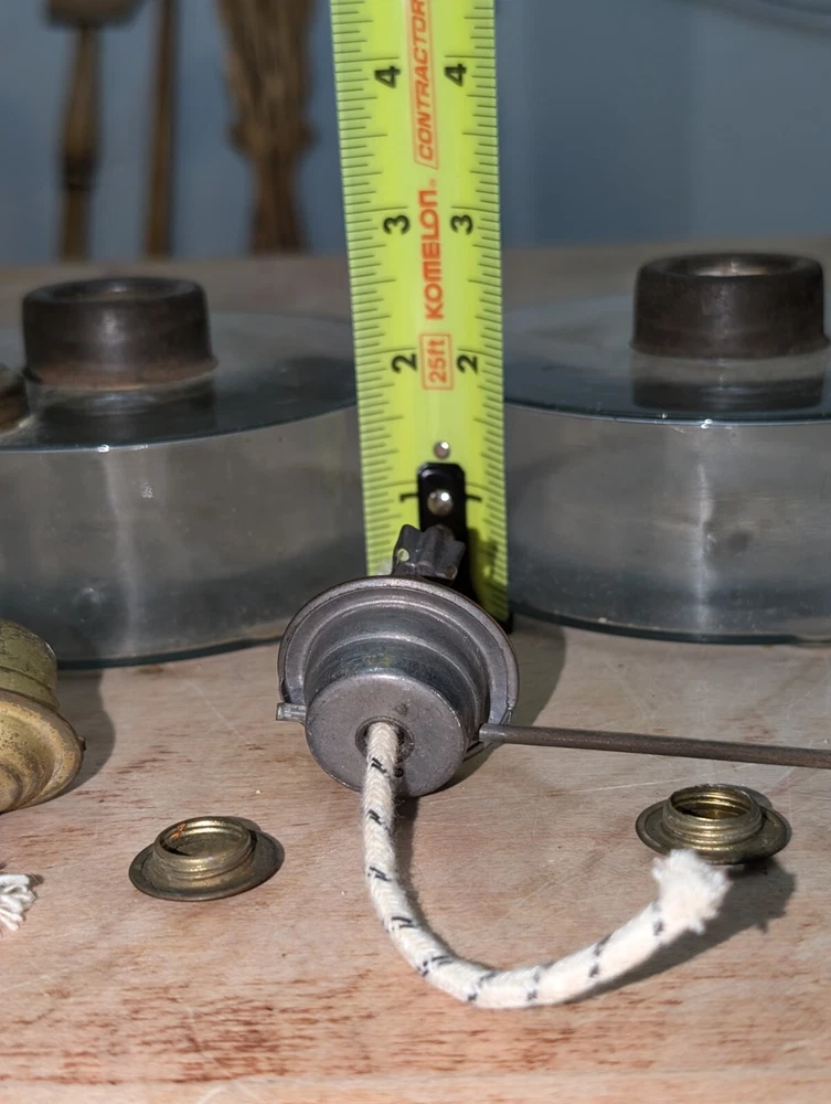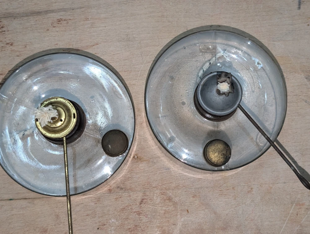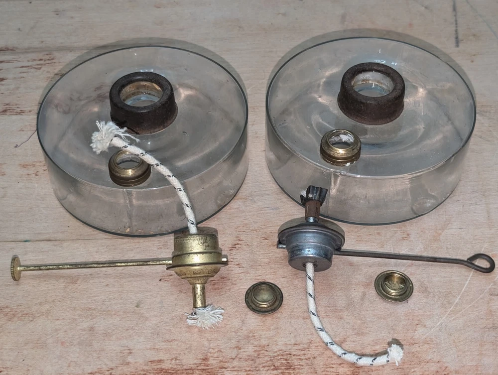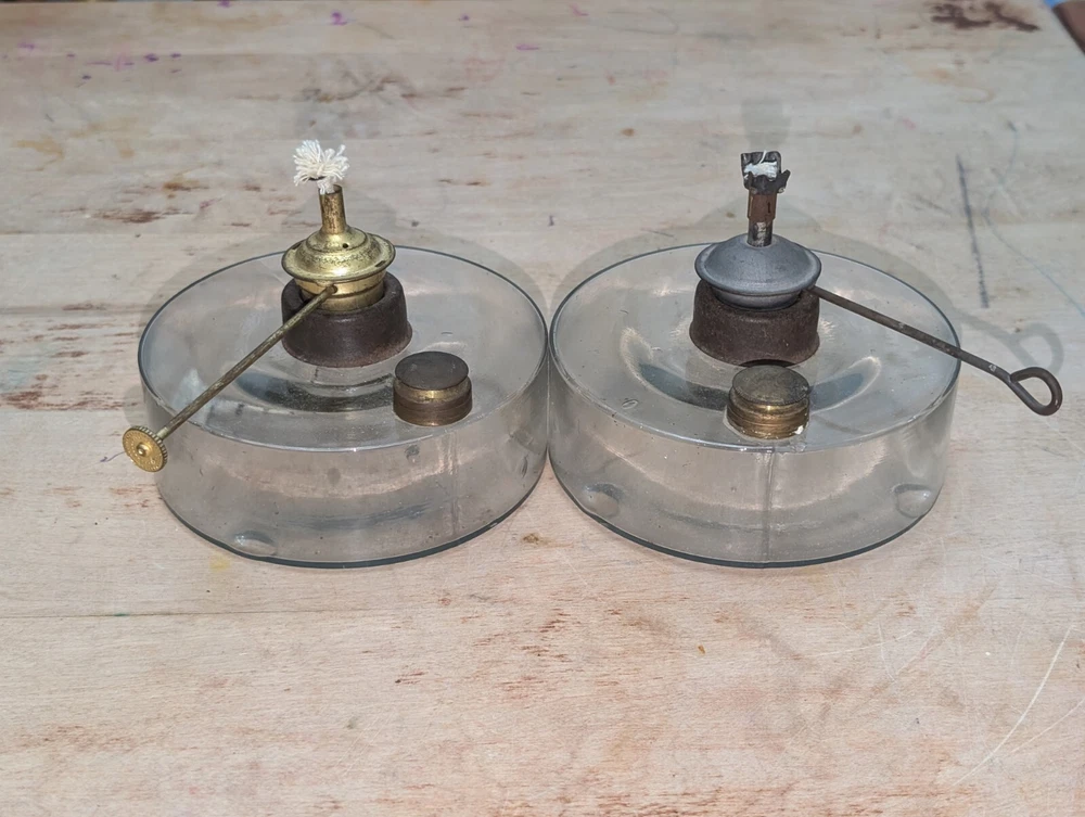Early Glass Oil Lamp Founts And Burners Pair Of 2 Primitive Antique 5" Seeds