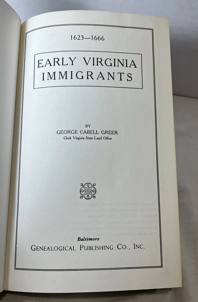 Discover the fascinating story of early Virginia immigrants with this vintage hardcover book by George Cabell Greer. Published in 1912, "Early Virginia Immigrants 1623-1666" offers a nonfiction narrative of the people who shaped the history of the United States. With 376 pages, this first edition book is a valuable addition to any history lover's collection. Please feel free to contact me with any questions you have